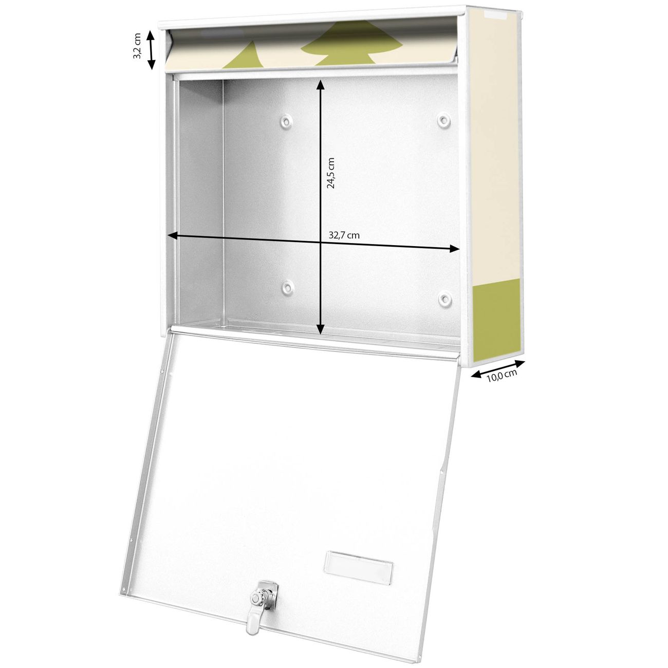- je Briefschlitz: 34,5 x 3,8cm (B x H)