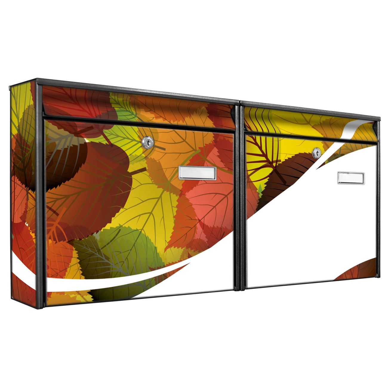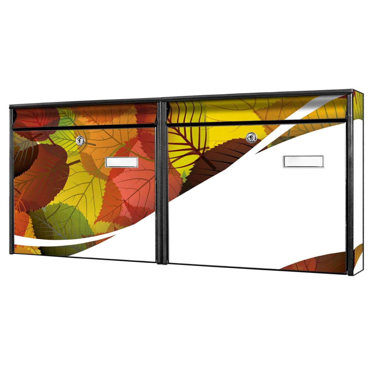 FUNKTION: Die Burg Wächter doppel Briefkastenanlage mit Motiv Herbstlaub bietet Ihnen ein großes Fassungsvermögen, sodass auch A4 Sendungen eingeworfen werden können. Das Namensschild lässt sich individuell beschriften. DESIGN: Die 2 Briefkästen mit Herbstlaub Motiv haben ein sehr ansprechendes und zeitloses Design. Heben Sie Sich von der tristen grauen Masse ab, ohne auf Funktionalität zu verzichten. Sie erhalten 2 Schlüssel sowie das Montagematerial. DETAILS: Der Doppelbriefkasten besteht aus verzinktem Stahl weiß. Er ist 72,5cm x 32,2cm x 10cm groß. Das Motiv besteht aus einer wetter- und UV-festen Folie, die Ihren Briefkasten zusätzlich vor Kratzern schützt. NUTZEN: Die stabile Bauart sowie die Wetterfestigkeit machen diese doppel Briefkästen zu einem zuverlässigen Begleiter im Alltag. Effektvoll in Reihe gehangen schmückt die Anlage jede Hauswand. BANJADO: Ihr Briefkasten wird in Sachsen in einer kleinen Manufaktur von Hand veredelt. Die Motivfolie ist lösungsmittelfrei und schutzlaminiert für einen langen Halt. Wir legen großen Wert auf die Verbindung von Funktionalität und Design. Sie erhalten Handarbeit aus Sachsen.