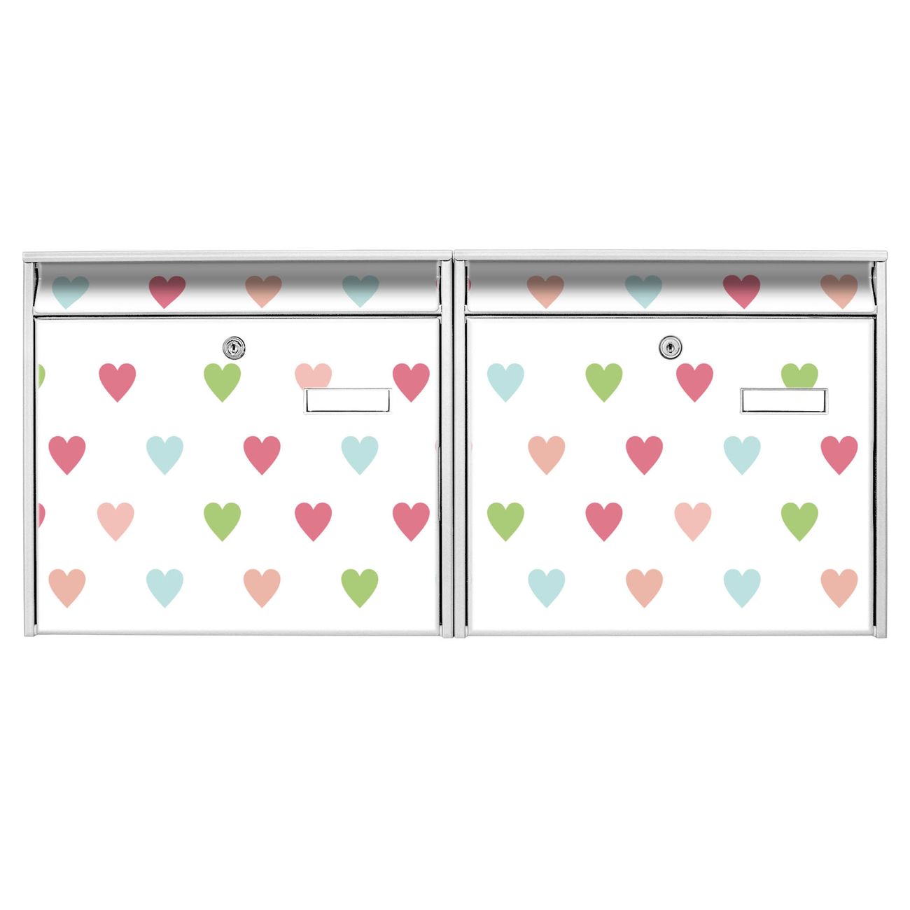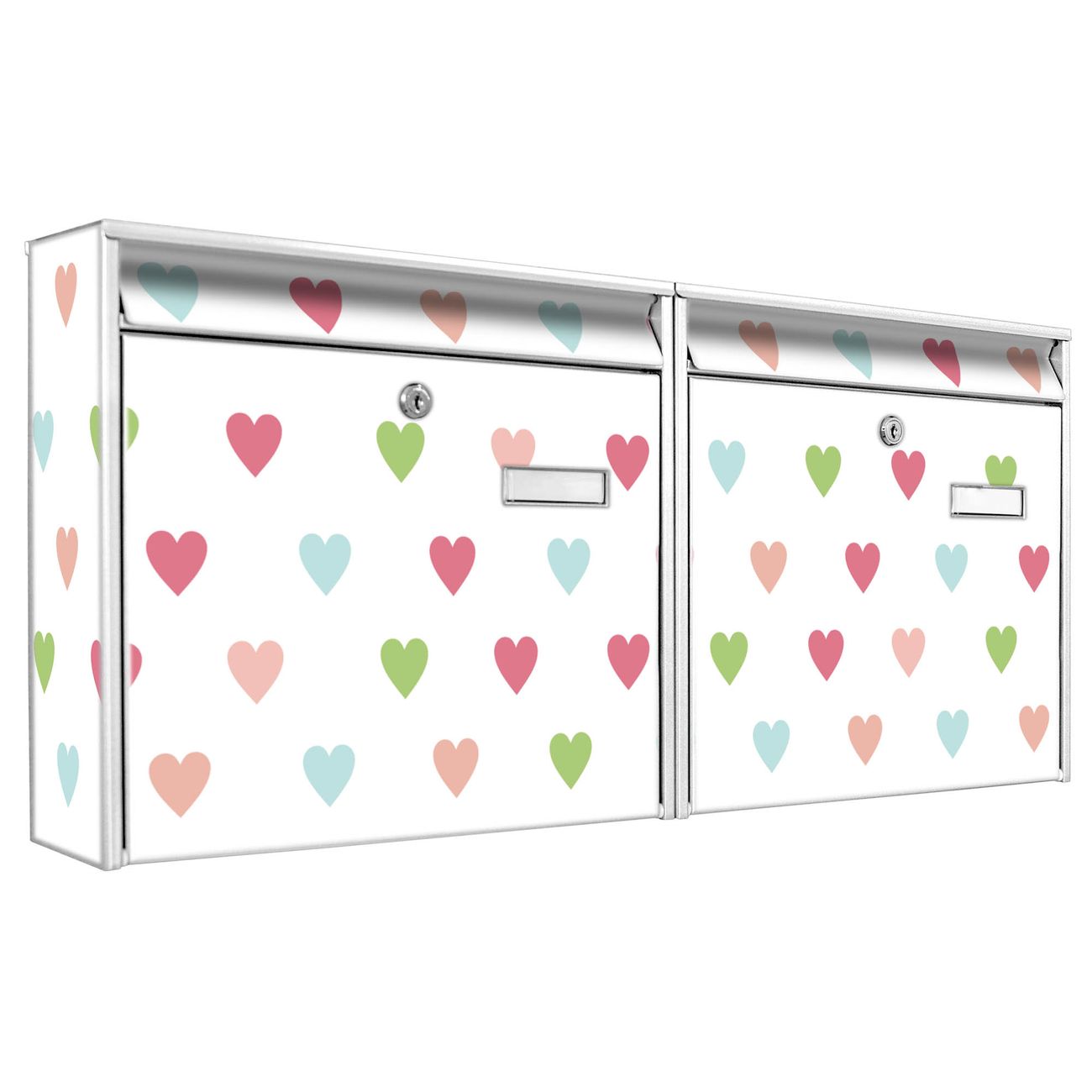 Doppelbriefkasten quer Herzen Auf Weiß