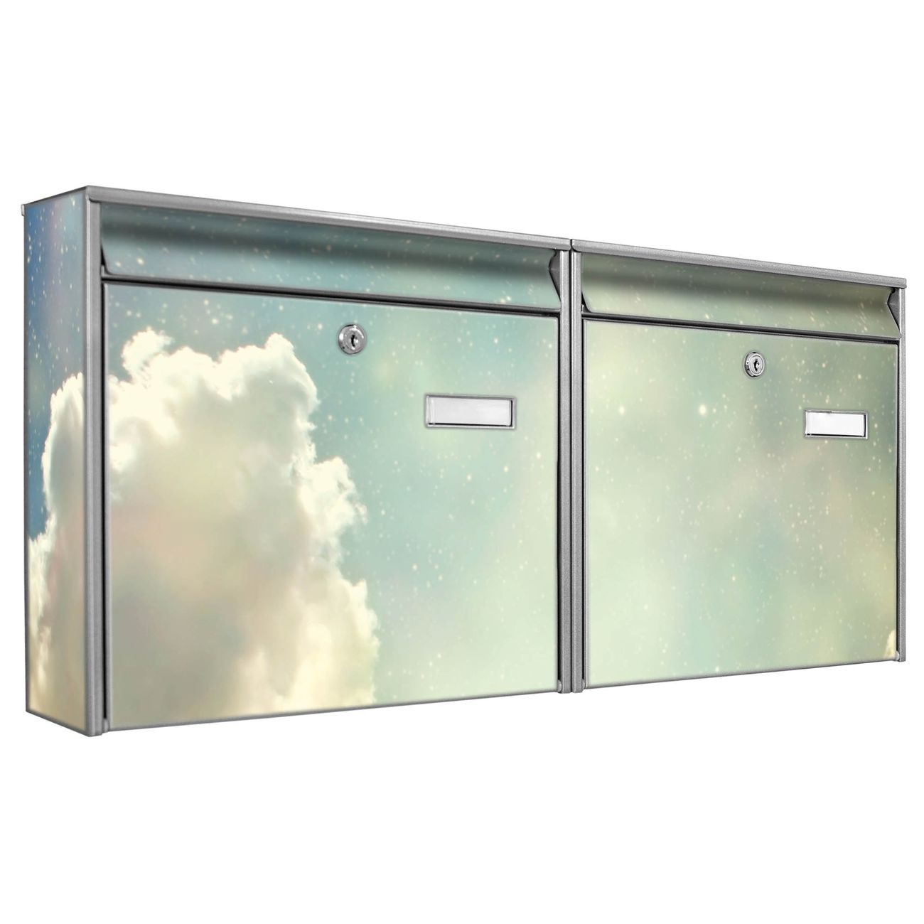 FUNKTION: Die Burg Wächter doppel Briefkastenanlage mit Motiv Himmel Vintage bietet Ihnen ein großes Fassungsvermögen, sodass auch A4 Sendungen eingeworfen werden können. Das Namensschild lässt sich individuell beschriften. DESIGN: Die 2 Briefkästen mit Himmel Vintage Motiv haben ein sehr ansprechendes und zeitloses Design. Heben Sie Sich von der tristen grauen Masse ab, ohne auf Funktionalität zu verzichten. Sie erhalten 2 Schlüssel sowie das Montagematerial. DETAILS: Der Doppelbriefkasten besteht aus verzinktem Stahl weiß. Er ist 72,5cm x 32,2cm x 10cm groß. Das Motiv besteht aus einer wetter- und UV-festen Folie, die Ihren Briefkasten zusätzlich vor Kratzern schützt. NUTZEN: Die stabile Bauart sowie die Wetterfestigkeit machen diese doppel Briefkästen zu einem zuverlässigen Begleiter im Alltag. Effektvoll in Reihe gehangen schmückt die Anlage jede Hauswand. BANJADO: Ihr Briefkasten wird in Sachsen in einer kleinen Manufaktur von Hand veredelt. Die Motivfolie ist lösungsmittelfrei und schutzlaminiert für einen langen Halt. Wir legen großen Wert auf die Verbindung von Funktionalität und Design. Sie erhalten Handarbeit aus Sachsen.
