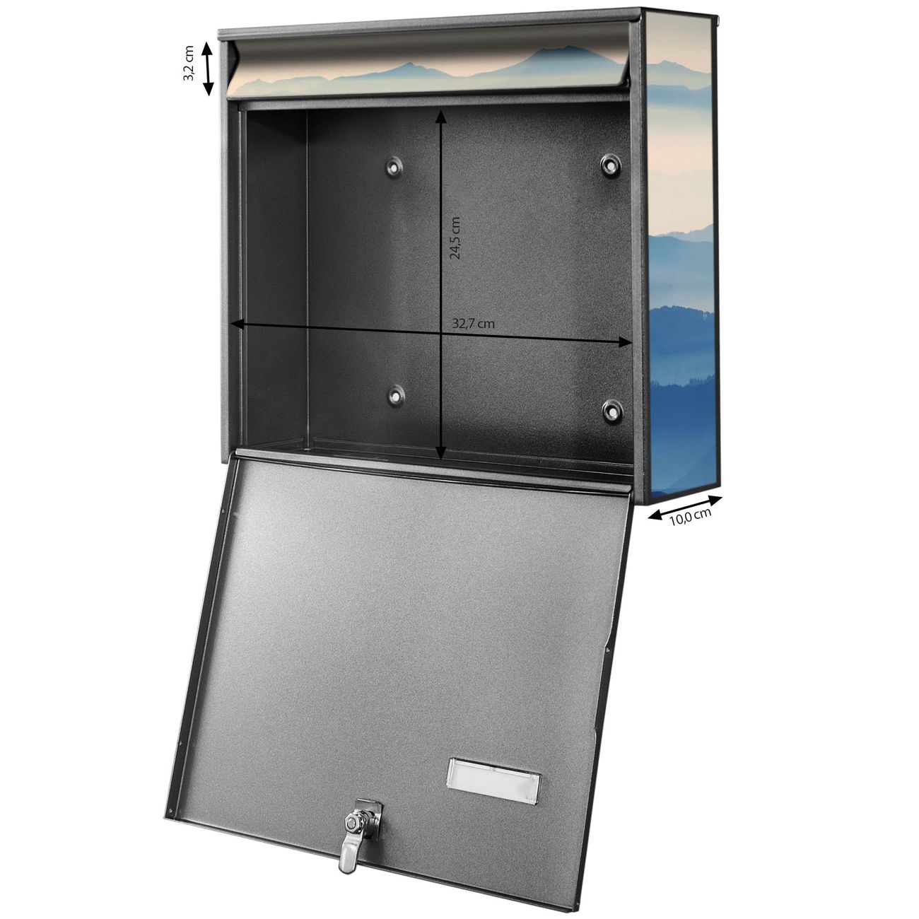 FUNKTION: Die Burg Wächter doppel Briefkastenanlage mit Motiv Hinter den Bergen bietet Ihnen ein großes Fassungsvermögen, sodass auch A4 Sendungen eingeworfen werden können. Das Namensschild lässt sich individuell beschriften. DESIGN: Die 2 Briefkästen mit Hinter den Bergen Motiv haben ein sehr ansprechendes und zeitloses Design. Heben Sie Sich von der tristen grauen Masse ab, ohne auf Funktionalität zu verzichten. Sie erhalten 2 Schlüssel sowie das Montagematerial. DETAILS: Der Doppelbriefkasten besteht aus verzinktem Stahl weiß. Er ist 72,5cm x 32,2cm x 10cm groß. Das Motiv besteht aus einer wetter- und UV-festen Folie, die Ihren Briefkasten zusätzlich vor Kratzern schützt. NUTZEN: Die stabile Bauart sowie die Wetterfestigkeit machen diese doppel Briefkästen zu einem zuverlässigen Begleiter im Alltag. Effektvoll in Reihe gehangen schmückt die Anlage jede Hauswand. BANJADO: Ihr Briefkasten wird in Sachsen in einer kleinen Manufaktur von Hand veredelt. Die Motivfolie ist lösungsmittelfrei und schutzlaminiert für einen langen Halt. Wir legen großen Wert auf die Verbindung von Funktionalität und Design. Sie erhalten Handarbeit aus Sachsen.