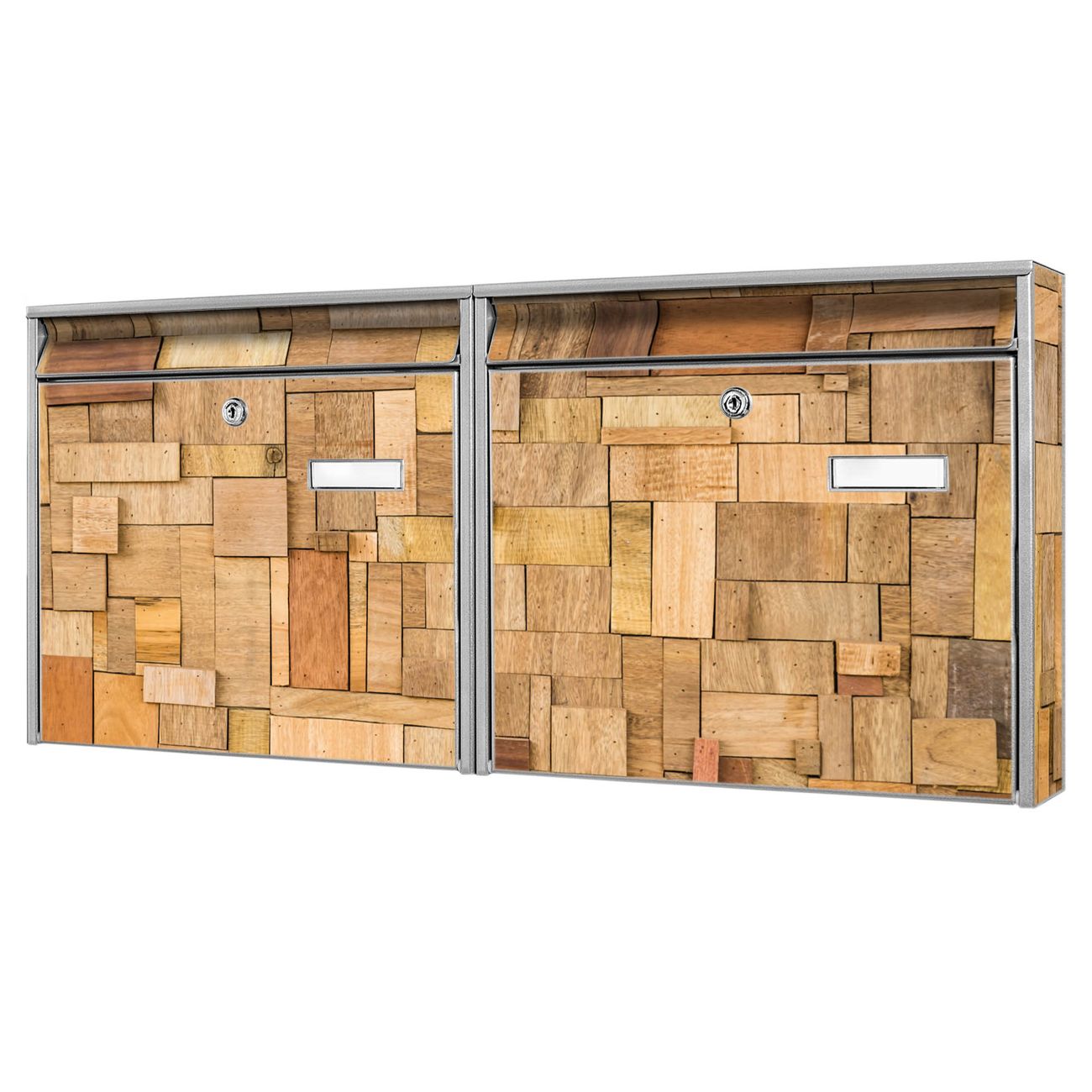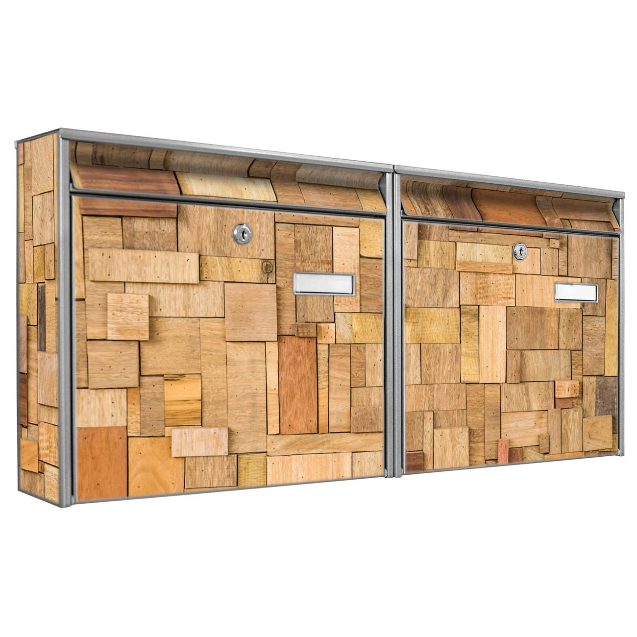 Doppelbriefkasten quer Hölzernes Flickwerk