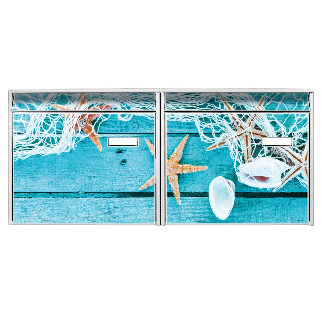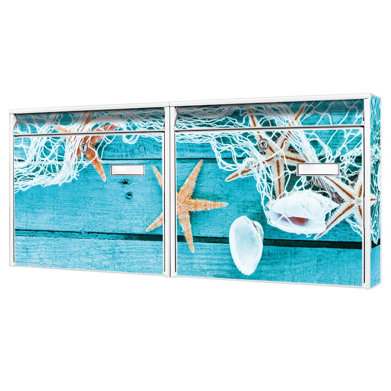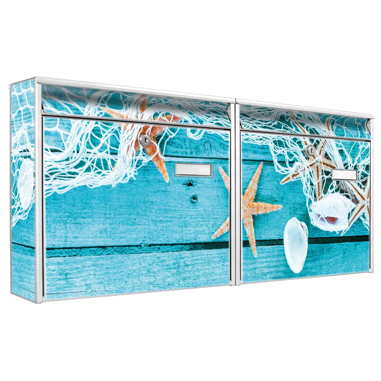 FUNKTION: Die Burg Wächter doppel Briefkastenanlage mit Motiv Ins Netz Gegangen bietet Ihnen ein großes Fassungsvermögen, sodass auch A4 Sendungen eingeworfen werden können. Das Namensschild lässt sich individuell beschriften. DESIGN: Die 2 Briefkästen mit Ins Netz Gegangen Motiv haben ein sehr ansprechendes und zeitloses Design. Heben Sie Sich von der tristen grauen Masse ab, ohne auf Funktionalität zu verzichten. Sie erhalten 2 Schlüssel sowie das Montagematerial. DETAILS: Der Doppelbriefkasten besteht aus verzinktem Stahl weiß. Er ist 72,5cm x 32,2cm x 10cm groß. Das Motiv besteht aus einer wetter- und UV-festen Folie, die Ihren Briefkasten zusätzlich vor Kratzern schützt. NUTZEN: Die stabile Bauart sowie die Wetterfestigkeit machen diese doppel Briefkästen zu einem zuverlässigen Begleiter im Alltag. Effektvoll in Reihe gehangen schmückt die Anlage jede Hauswand. BANJADO: Ihr Briefkasten wird in Sachsen in einer kleinen Manufaktur von Hand veredelt. Die Motivfolie ist lösungsmittelfrei und schutzlaminiert für einen langen Halt. Wir legen großen Wert auf die Verbindung von Funktionalität und Design. Sie erhalten Handarbeit aus Sachsen.