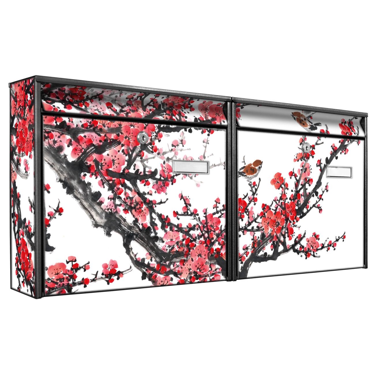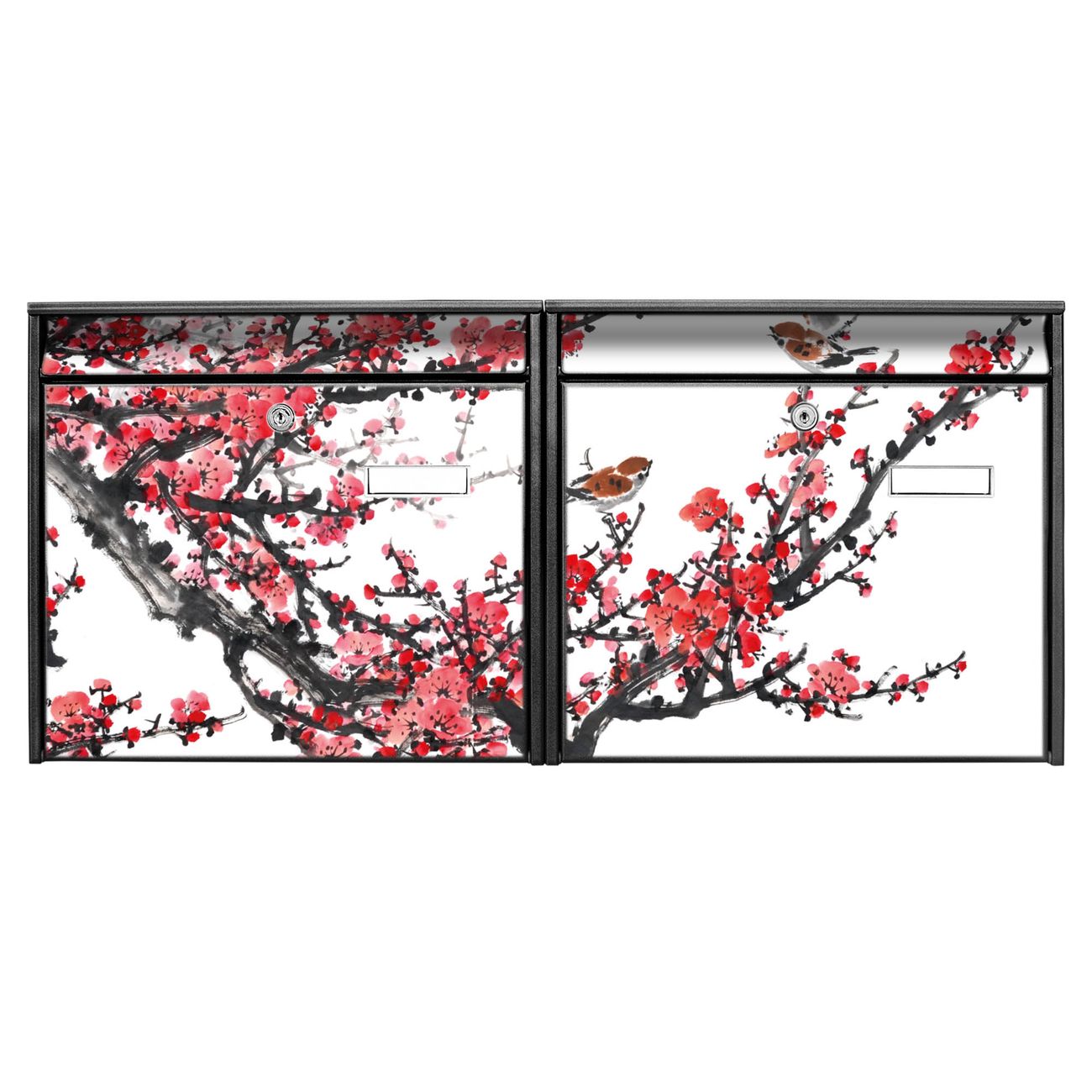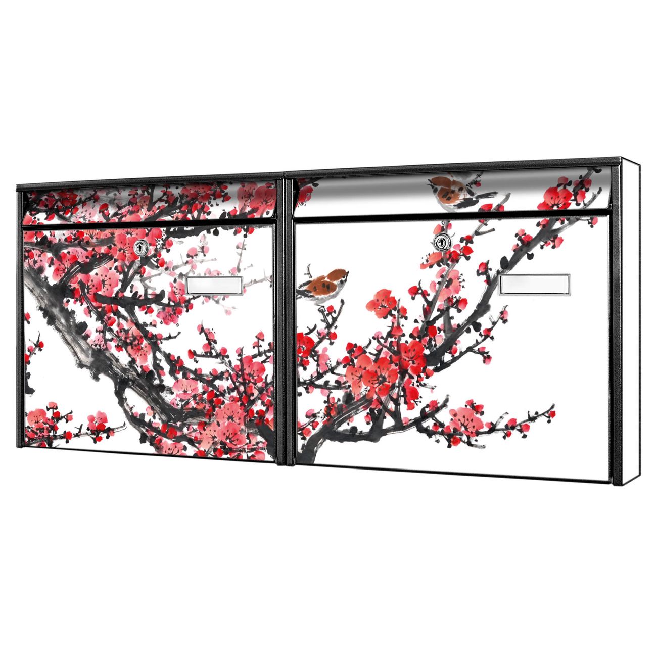 Doppelbriefkasten quer Japanische Blüten 1