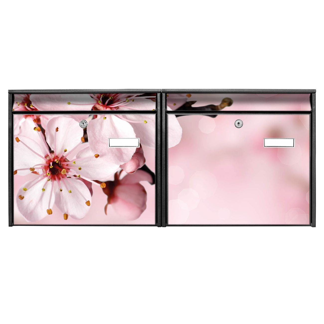 FUNKTION: Die Burg Wächter doppel Briefkastenanlage mit Motiv Japanische Kirsche bietet Ihnen ein großes Fassungsvermögen, sodass auch A4 Sendungen eingeworfen werden können. Das Namensschild lässt sich individuell beschriften. DESIGN: Die 2 Briefkästen mit Japanische Kirsche Motiv haben ein sehr ansprechendes und zeitloses Design. Heben Sie Sich von der tristen grauen Masse ab, ohne auf Funktionalität zu verzichten. Sie erhalten 2 Schlüssel sowie das Montagematerial. DETAILS: Der Doppelbriefkasten besteht aus verzinktem Stahl weiß. Er ist 72,5cm x 32,2cm x 10cm groß. Das Motiv besteht aus einer wetter- und UV-festen Folie, die Ihren Briefkasten zusätzlich vor Kratzern schützt. NUTZEN: Die stabile Bauart sowie die Wetterfestigkeit machen diese doppel Briefkästen zu einem zuverlässigen Begleiter im Alltag. Effektvoll in Reihe gehangen schmückt die Anlage jede Hauswand. BANJADO: Ihr Briefkasten wird in Sachsen in einer kleinen Manufaktur von Hand veredelt. Die Motivfolie ist lösungsmittelfrei und schutzlaminiert für einen langen Halt. Wir legen großen Wert auf die Verbindung von Funktionalität und Design. Sie erhalten Handarbeit aus Sachsen.
