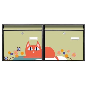 FUNKTION: Die Burg Wächter doppel Briefkastenanlage mit Motiv Karikatur Katzen bietet Ihnen ein großes Fassungsvermögen, sodass auch A4 Sendungen eingeworfen werden können. Das Namensschild lässt sich individuell beschriften. DESIGN: Die 2 Briefkästen mit Karikatur Katzen Motiv haben ein sehr ansprechendes und zeitloses Design. Heben Sie Sich von der tristen grauen Masse ab, ohne auf Funktionalität zu verzichten. Sie erhalten 2 Schlüssel sowie das Montagematerial. DETAILS: Der Doppelbriefkasten besteht aus verzinktem Stahl weiß. Er ist 72,5cm x 32,2cm x 10cm groß. Das Motiv besteht aus einer wetter- und UV-festen Folie, die Ihren Briefkasten zusätzlich vor Kratzern schützt. NUTZEN: Die stabile Bauart sowie die Wetterfestigkeit machen diese doppel Briefkästen zu einem zuverlässigen Begleiter im Alltag. Effektvoll in Reihe gehangen schmückt die Anlage jede Hauswand. BANJADO: Ihr Briefkasten wird in Sachsen in einer kleinen Manufaktur von Hand veredelt. Die Motivfolie ist lösungsmittelfrei und schutzlaminiert für einen langen Halt. Wir legen großen Wert auf die Verbindung von Funktionalität und Design. Sie erhalten Handarbeit aus Sachsen.