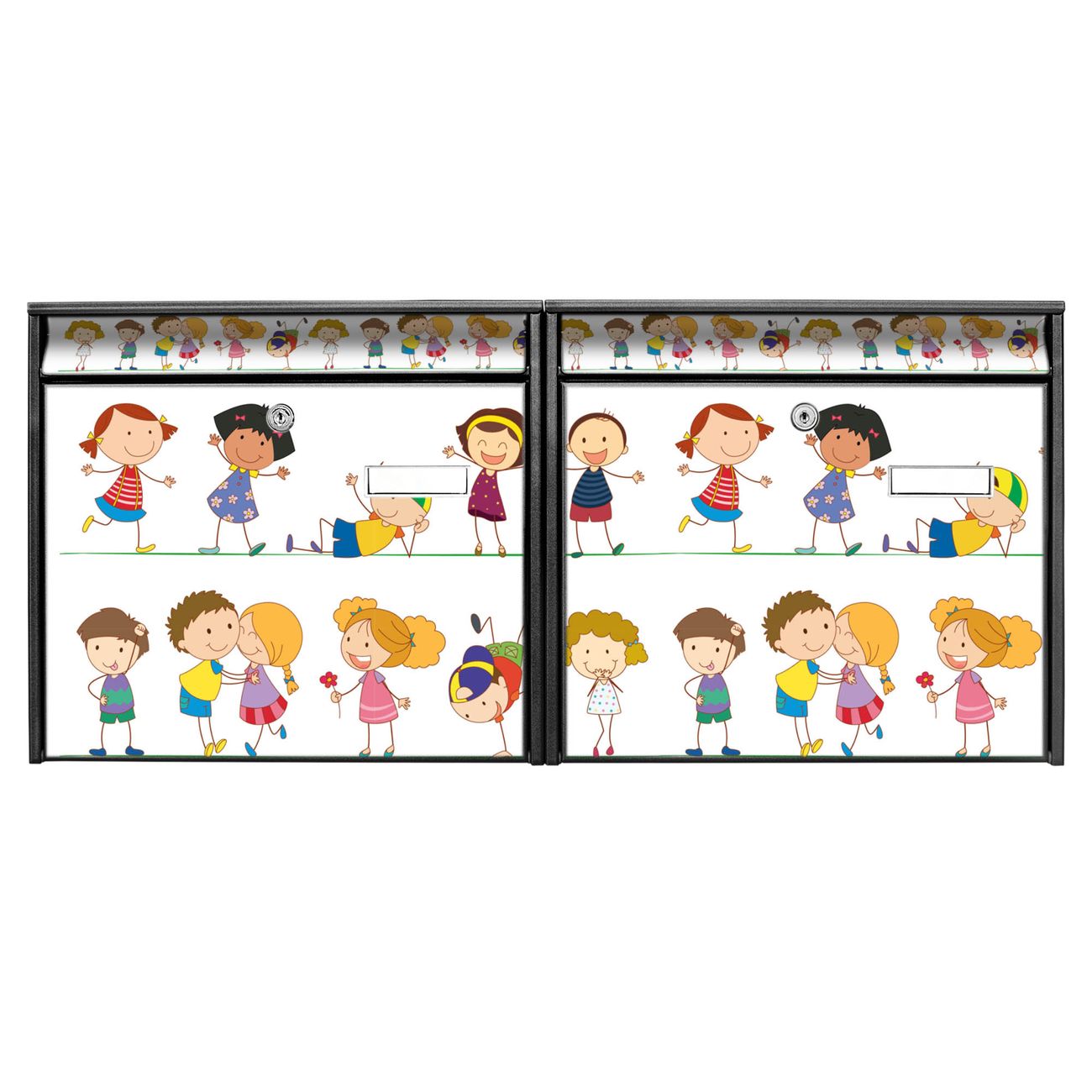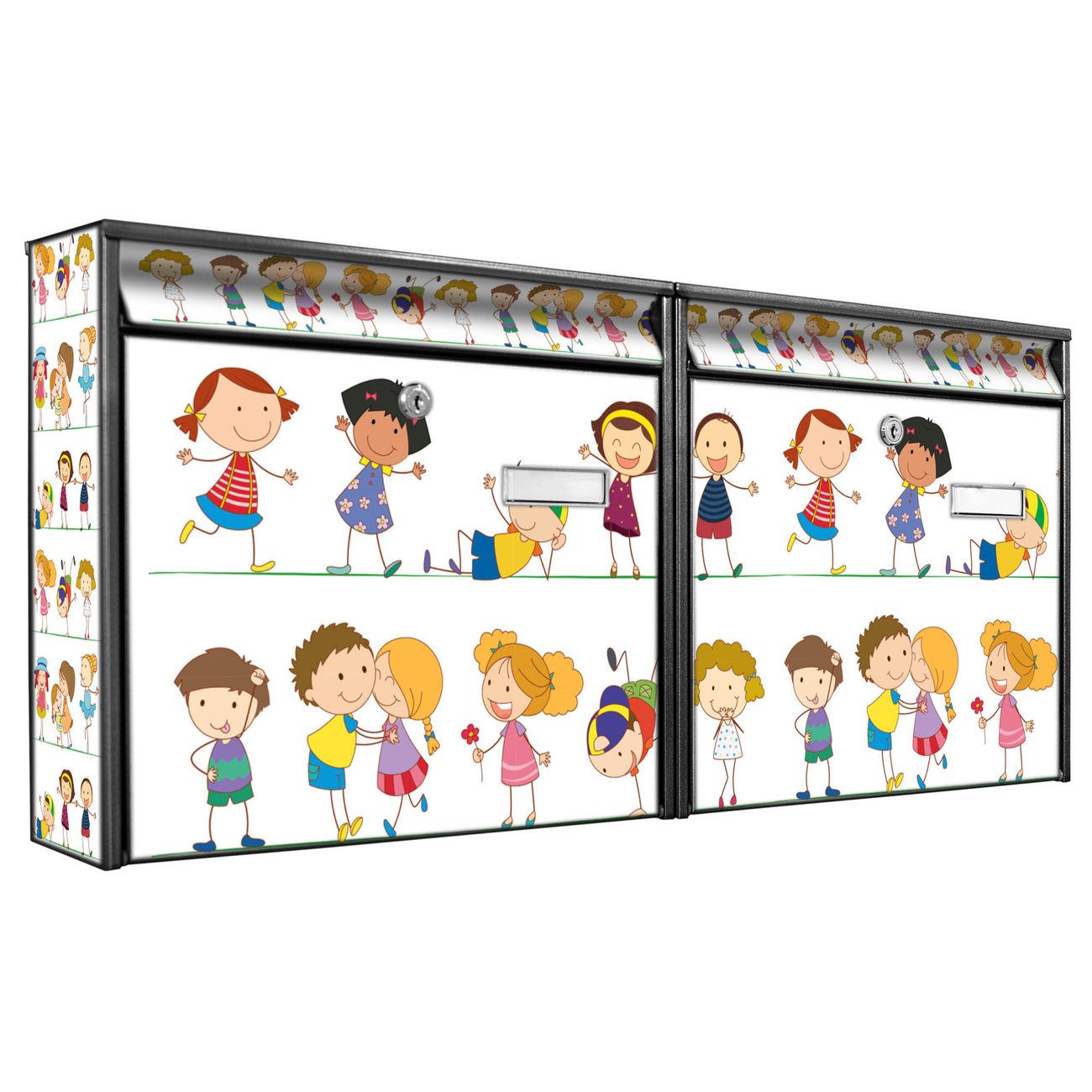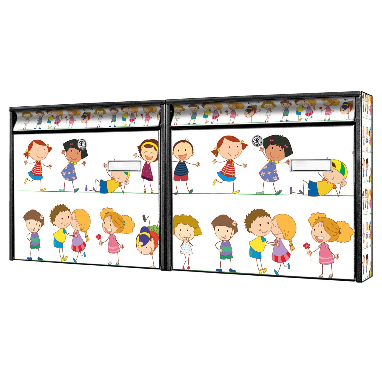 FUNKTION: Die Burg Wächter doppel Briefkastenanlage mit Motiv Kinder bietet Ihnen ein großes Fassungsvermögen, sodass auch A4 Sendungen eingeworfen werden können. Das Namensschild lässt sich individuell beschriften. DESIGN: Die 2 Briefkästen mit Kinder Motiv haben ein sehr ansprechendes und zeitloses Design. Heben Sie Sich von der tristen grauen Masse ab, ohne auf Funktionalität zu verzichten. Sie erhalten 2 Schlüssel sowie das Montagematerial. DETAILS: Der Doppelbriefkasten besteht aus verzinktem Stahl weiß. Er ist 72,5cm x 32,2cm x 10cm groß. Das Motiv besteht aus einer wetter- und UV-festen Folie, die Ihren Briefkasten zusätzlich vor Kratzern schützt. NUTZEN: Die stabile Bauart sowie die Wetterfestigkeit machen diese doppel Briefkästen zu einem zuverlässigen Begleiter im Alltag. Effektvoll in Reihe gehangen schmückt die Anlage jede Hauswand. BANJADO: Ihr Briefkasten wird in Sachsen in einer kleinen Manufaktur von Hand veredelt. Die Motivfolie ist lösungsmittelfrei und schutzlaminiert für einen langen Halt. Wir legen großen Wert auf die Verbindung von Funktionalität und Design. Sie erhalten Handarbeit aus Sachsen.