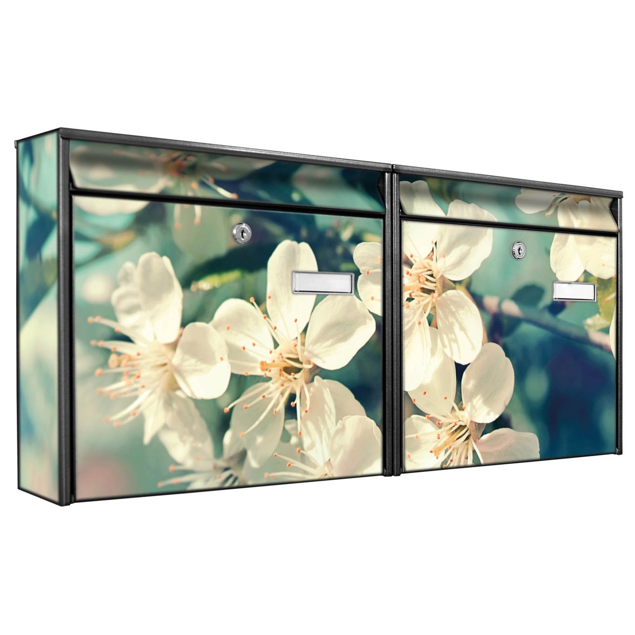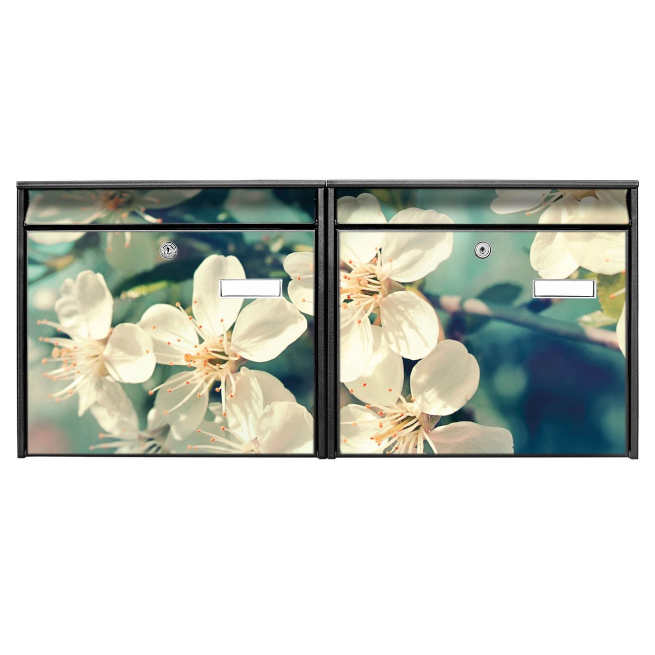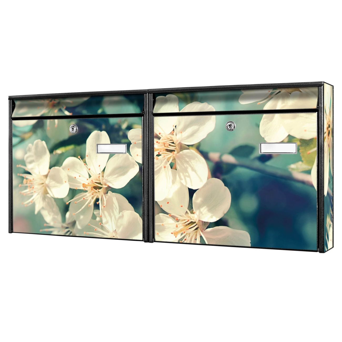 FUNKTION: Die Burg Wächter doppel Briefkastenanlage mit Motiv Kirschblüten 2 bietet Ihnen ein großes Fassungsvermögen, sodass auch A4 Sendungen eingeworfen werden können. Das Namensschild lässt sich individuell beschriften. DESIGN: Die 2 Briefkästen mit Kirschblüten 2 Motiv haben ein sehr ansprechendes und zeitloses Design. Heben Sie Sich von der tristen grauen Masse ab, ohne auf Funktionalität zu verzichten. Sie erhalten 2 Schlüssel sowie das Montagematerial. DETAILS: Der Doppelbriefkasten besteht aus verzinktem Stahl weiß. Er ist 72,5cm x 32,2cm x 10cm groß. Das Motiv besteht aus einer wetter- und UV-festen Folie, die Ihren Briefkasten zusätzlich vor Kratzern schützt. NUTZEN: Die stabile Bauart sowie die Wetterfestigkeit machen diese doppel Briefkästen zu einem zuverlässigen Begleiter im Alltag. Effektvoll in Reihe gehangen schmückt die Anlage jede Hauswand. BANJADO: Ihr Briefkasten wird in Sachsen in einer kleinen Manufaktur von Hand veredelt. Die Motivfolie ist lösungsmittelfrei und schutzlaminiert für einen langen Halt. Wir legen großen Wert auf die Verbindung von Funktionalität und Design. Sie erhalten Handarbeit aus Sachsen.