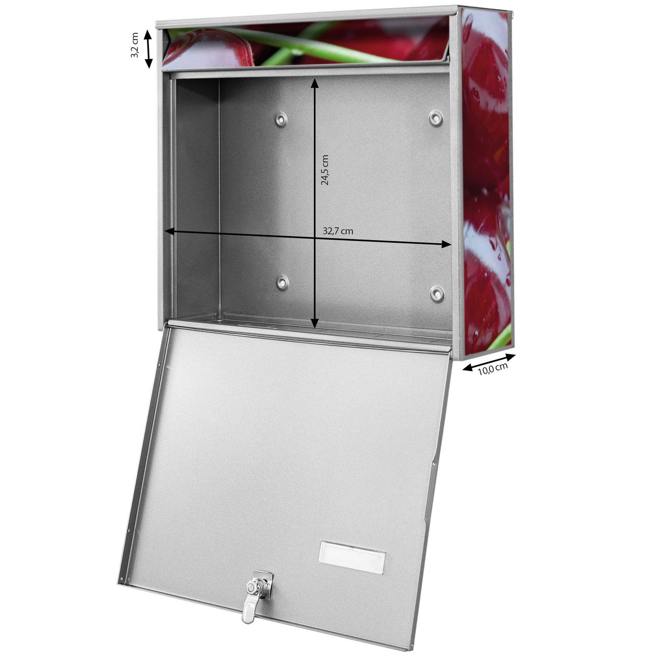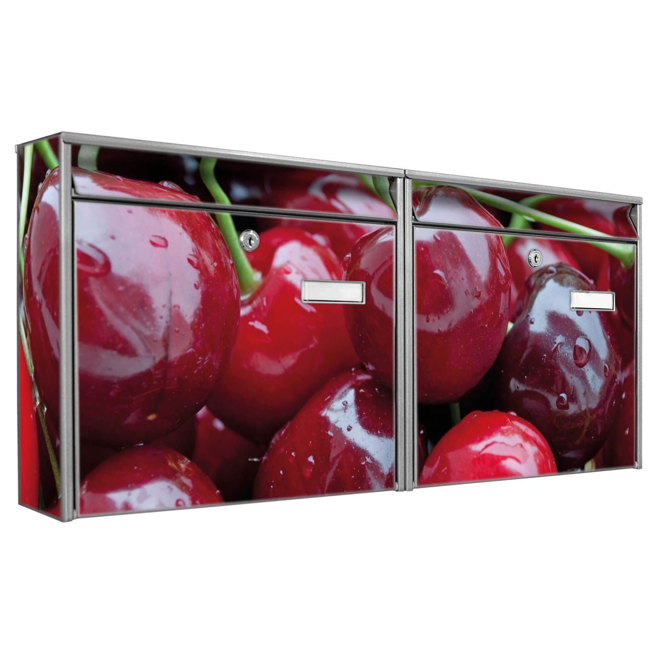 FUNKTION: Die Burg Wächter doppel Briefkastenanlage mit Motiv Kirschen bietet Ihnen ein großes Fassungsvermögen, sodass auch A4 Sendungen eingeworfen werden können. Das Namensschild lässt sich individuell beschriften. DESIGN: Die 2 Briefkästen mit Kirschen Motiv haben ein sehr ansprechendes und zeitloses Design. Heben Sie Sich von der tristen grauen Masse ab, ohne auf Funktionalität zu verzichten. Sie erhalten 2 Schlüssel sowie das Montagematerial. DETAILS: Der Doppelbriefkasten besteht aus verzinktem Stahl weiß. Er ist 72,5cm x 32,2cm x 10cm groß. Das Motiv besteht aus einer wetter- und UV-festen Folie, die Ihren Briefkasten zusätzlich vor Kratzern schützt. NUTZEN: Die stabile Bauart sowie die Wetterfestigkeit machen diese doppel Briefkästen zu einem zuverlässigen Begleiter im Alltag. Effektvoll in Reihe gehangen schmückt die Anlage jede Hauswand. BANJADO: Ihr Briefkasten wird in Sachsen in einer kleinen Manufaktur von Hand veredelt. Die Motivfolie ist lösungsmittelfrei und schutzlaminiert für einen langen Halt. Wir legen großen Wert auf die Verbindung von Funktionalität und Design. Sie erhalten Handarbeit aus Sachsen.