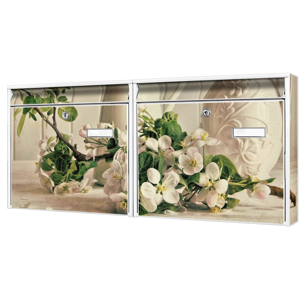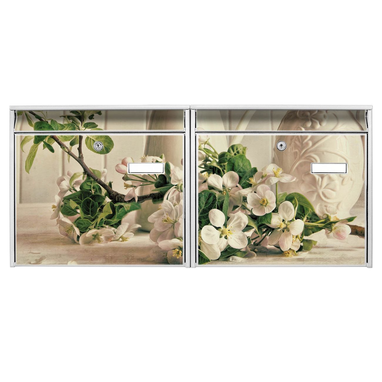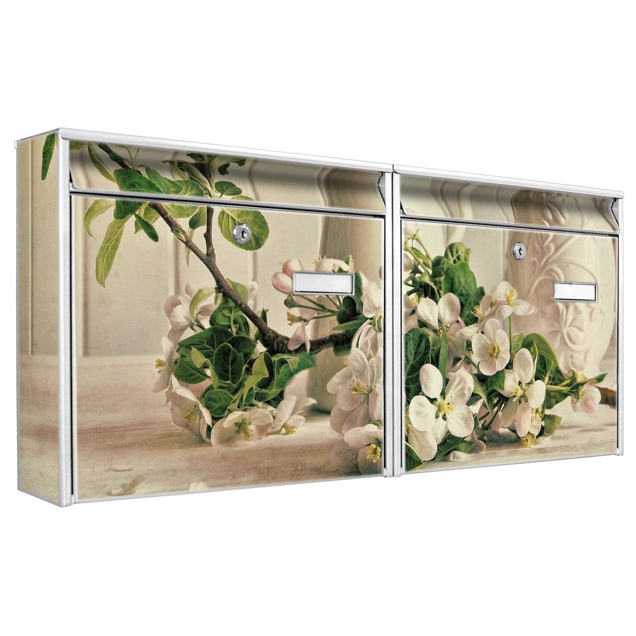 FUNKTION: Die Burg Wächter doppel Briefkastenanlage mit Motiv Kirschzweige bietet Ihnen ein großes Fassungsvermögen, sodass auch A4 Sendungen eingeworfen werden können. Das Namensschild lässt sich individuell beschriften. DESIGN: Die 2 Briefkästen mit Kirschzweige Motiv haben ein sehr ansprechendes und zeitloses Design. Heben Sie Sich von der tristen grauen Masse ab, ohne auf Funktionalität zu verzichten. Sie erhalten 2 Schlüssel sowie das Montagematerial. DETAILS: Der Doppelbriefkasten besteht aus verzinktem Stahl weiß. Er ist 72,5cm x 32,2cm x 10cm groß. Das Motiv besteht aus einer wetter- und UV-festen Folie, die Ihren Briefkasten zusätzlich vor Kratzern schützt. NUTZEN: Die stabile Bauart sowie die Wetterfestigkeit machen diese doppel Briefkästen zu einem zuverlässigen Begleiter im Alltag. Effektvoll in Reihe gehangen schmückt die Anlage jede Hauswand. BANJADO: Ihr Briefkasten wird in Sachsen in einer kleinen Manufaktur von Hand veredelt. Die Motivfolie ist lösungsmittelfrei und schutzlaminiert für einen langen Halt. Wir legen großen Wert auf die Verbindung von Funktionalität und Design. Sie erhalten Handarbeit aus Sachsen.