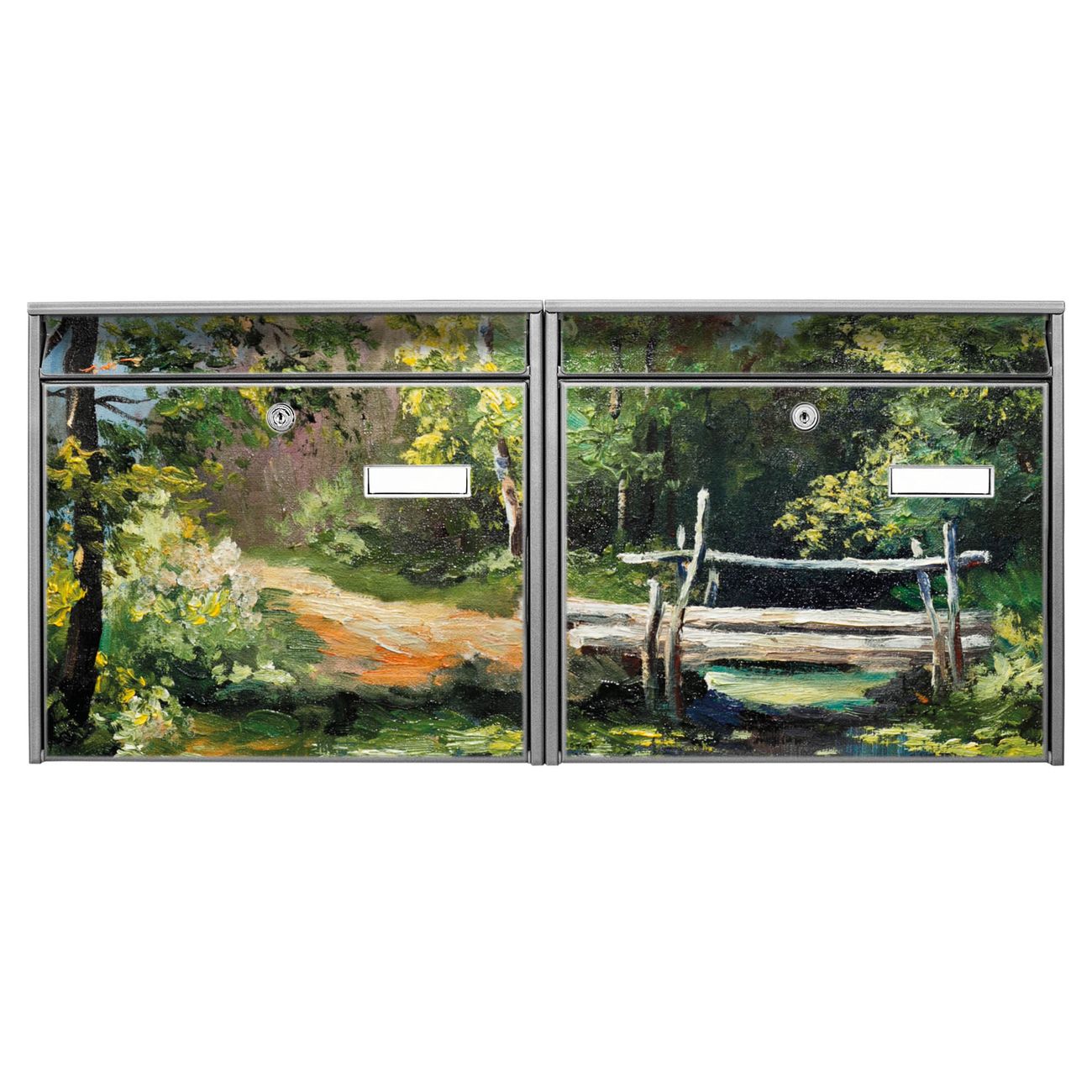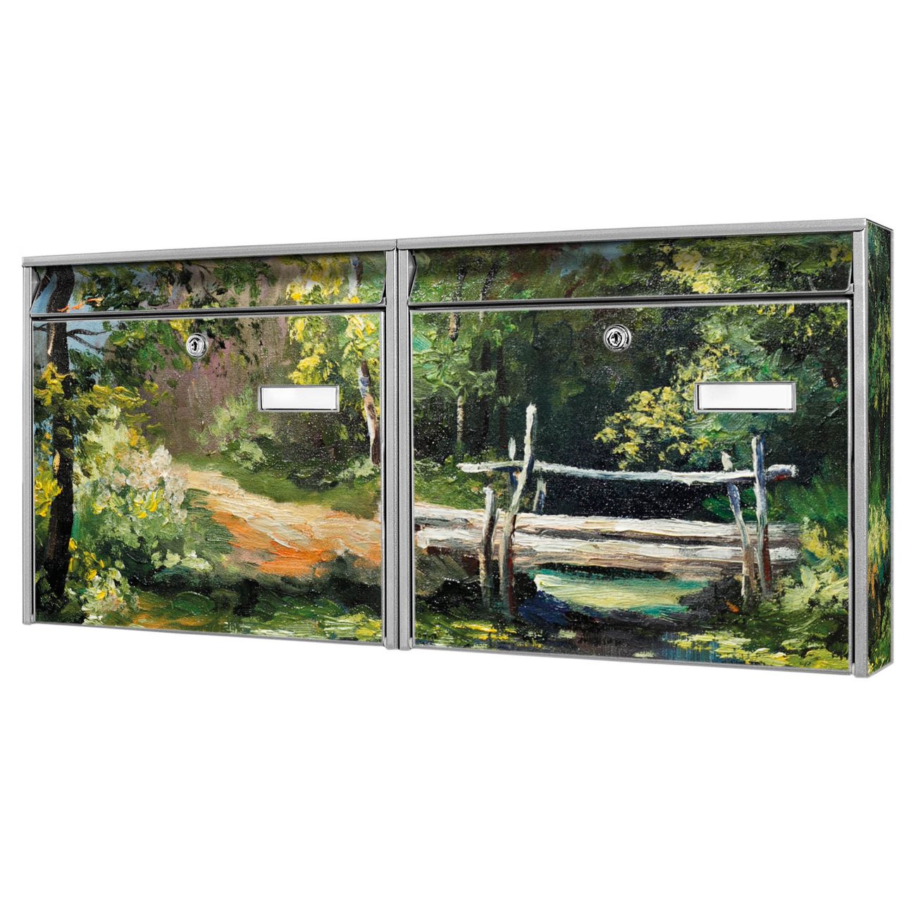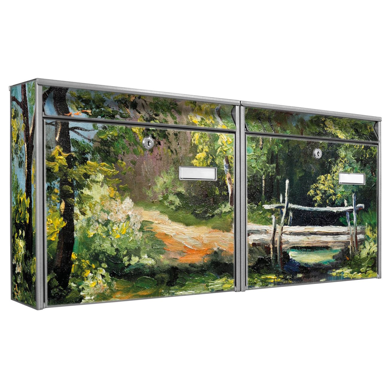 FUNKTION: Die Burg Wächter doppel Briefkastenanlage mit Motiv Kleine Brücke bietet Ihnen ein großes Fassungsvermögen, sodass auch A4 Sendungen eingeworfen werden können. Das Namensschild lässt sich individuell beschriften. DESIGN: Die 2 Briefkästen mit Kleine Brücke Motiv haben ein sehr ansprechendes und zeitloses Design. Heben Sie Sich von der tristen grauen Masse ab, ohne auf Funktionalität zu verzichten. Sie erhalten 2 Schlüssel sowie das Montagematerial. DETAILS: Der Doppelbriefkasten besteht aus verzinktem Stahl weiß. Er ist 72,5cm x 32,2cm x 10cm groß. Das Motiv besteht aus einer wetter- und UV-festen Folie, die Ihren Briefkasten zusätzlich vor Kratzern schützt. NUTZEN: Die stabile Bauart sowie die Wetterfestigkeit machen diese doppel Briefkästen zu einem zuverlässigen Begleiter im Alltag. Effektvoll in Reihe gehangen schmückt die Anlage jede Hauswand. BANJADO: Ihr Briefkasten wird in Sachsen in einer kleinen Manufaktur von Hand veredelt. Die Motivfolie ist lösungsmittelfrei und schutzlaminiert für einen langen Halt. Wir legen großen Wert auf die Verbindung von Funktionalität und Design. Sie erhalten Handarbeit aus Sachsen.