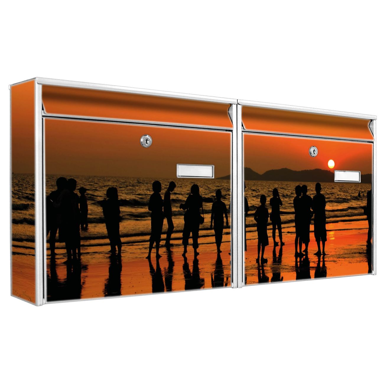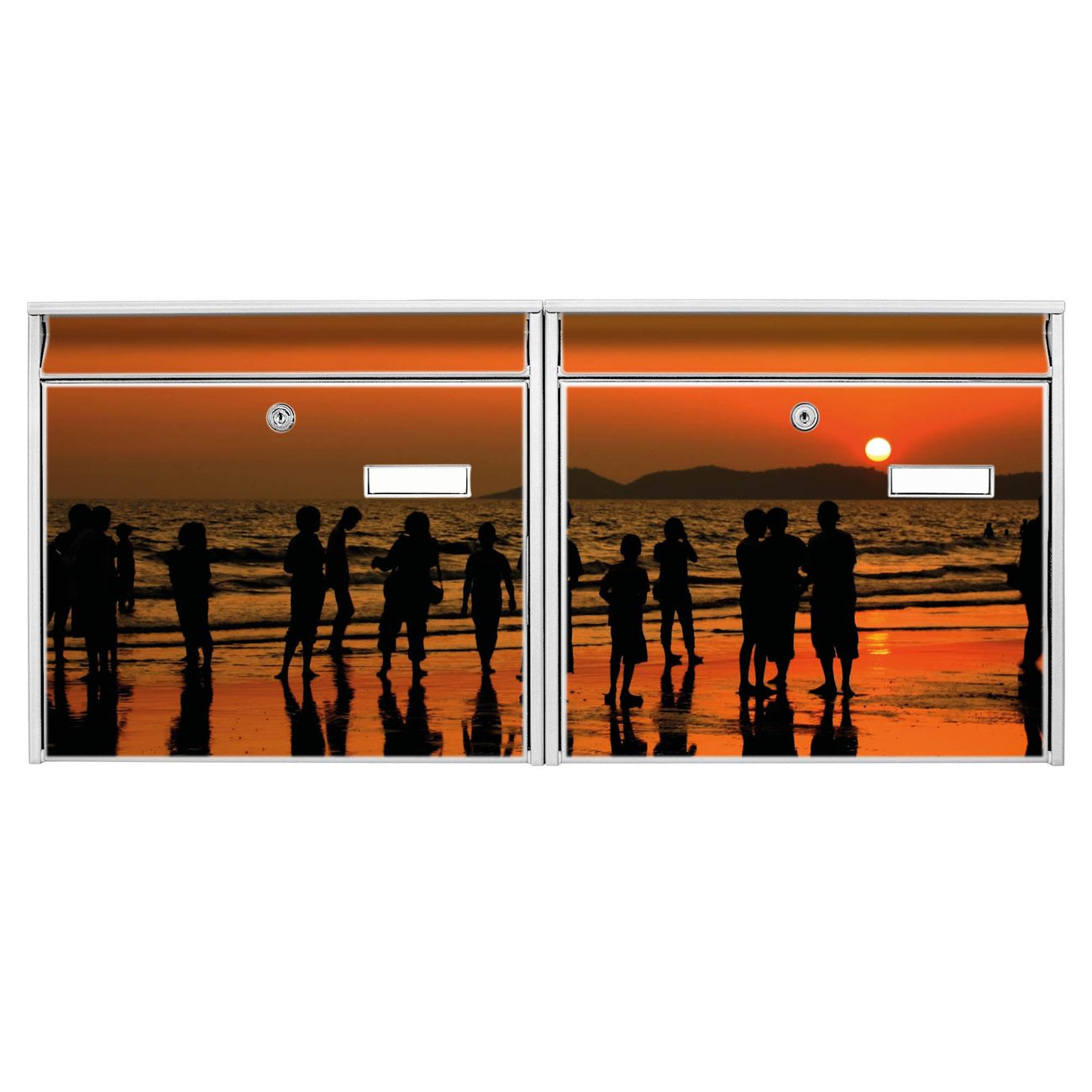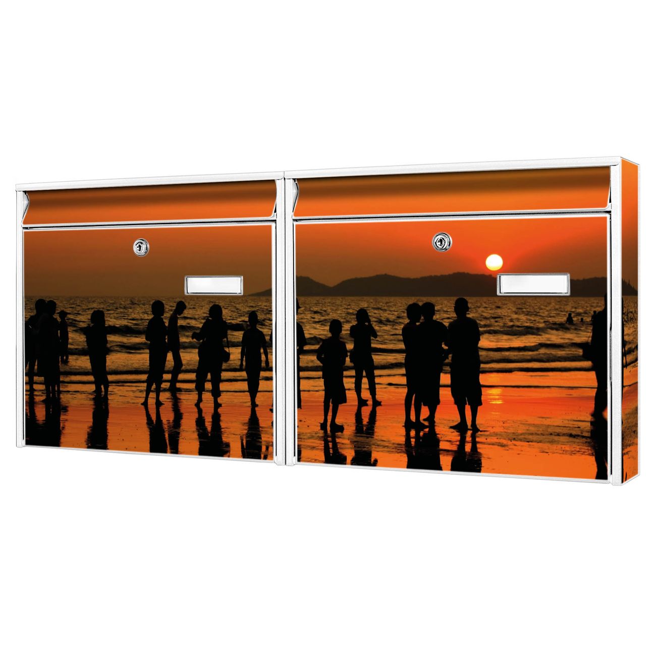 FUNKTION: Die Burg Wächter doppel Briefkastenanlage mit Motiv Koh Samet Beach bietet Ihnen ein großes Fassungsvermögen, sodass auch A4 Sendungen eingeworfen werden können. Das Namensschild lässt sich individuell beschriften. DESIGN: Die 2 Briefkästen mit Koh Samet Beach Motiv haben ein sehr ansprechendes und zeitloses Design. Heben Sie Sich von der tristen grauen Masse ab, ohne auf Funktionalität zu verzichten. Sie erhalten 2 Schlüssel sowie das Montagematerial. DETAILS: Der Doppelbriefkasten besteht aus verzinktem Stahl weiß. Er ist 72,5cm x 32,2cm x 10cm groß. Das Motiv besteht aus einer wetter- und UV-festen Folie, die Ihren Briefkasten zusätzlich vor Kratzern schützt. NUTZEN: Die stabile Bauart sowie die Wetterfestigkeit machen diese doppel Briefkästen zu einem zuverlässigen Begleiter im Alltag. Effektvoll in Reihe gehangen schmückt die Anlage jede Hauswand. BANJADO: Ihr Briefkasten wird in Sachsen in einer kleinen Manufaktur von Hand veredelt. Die Motivfolie ist lösungsmittelfrei und schutzlaminiert für einen langen Halt. Wir legen großen Wert auf die Verbindung von Funktionalität und Design. Sie erhalten Handarbeit aus Sachsen.