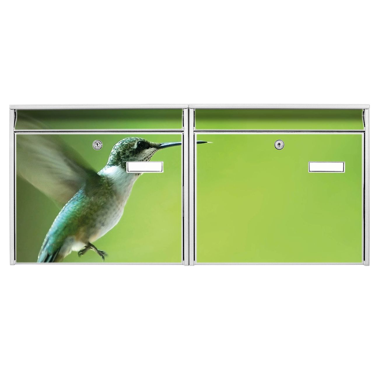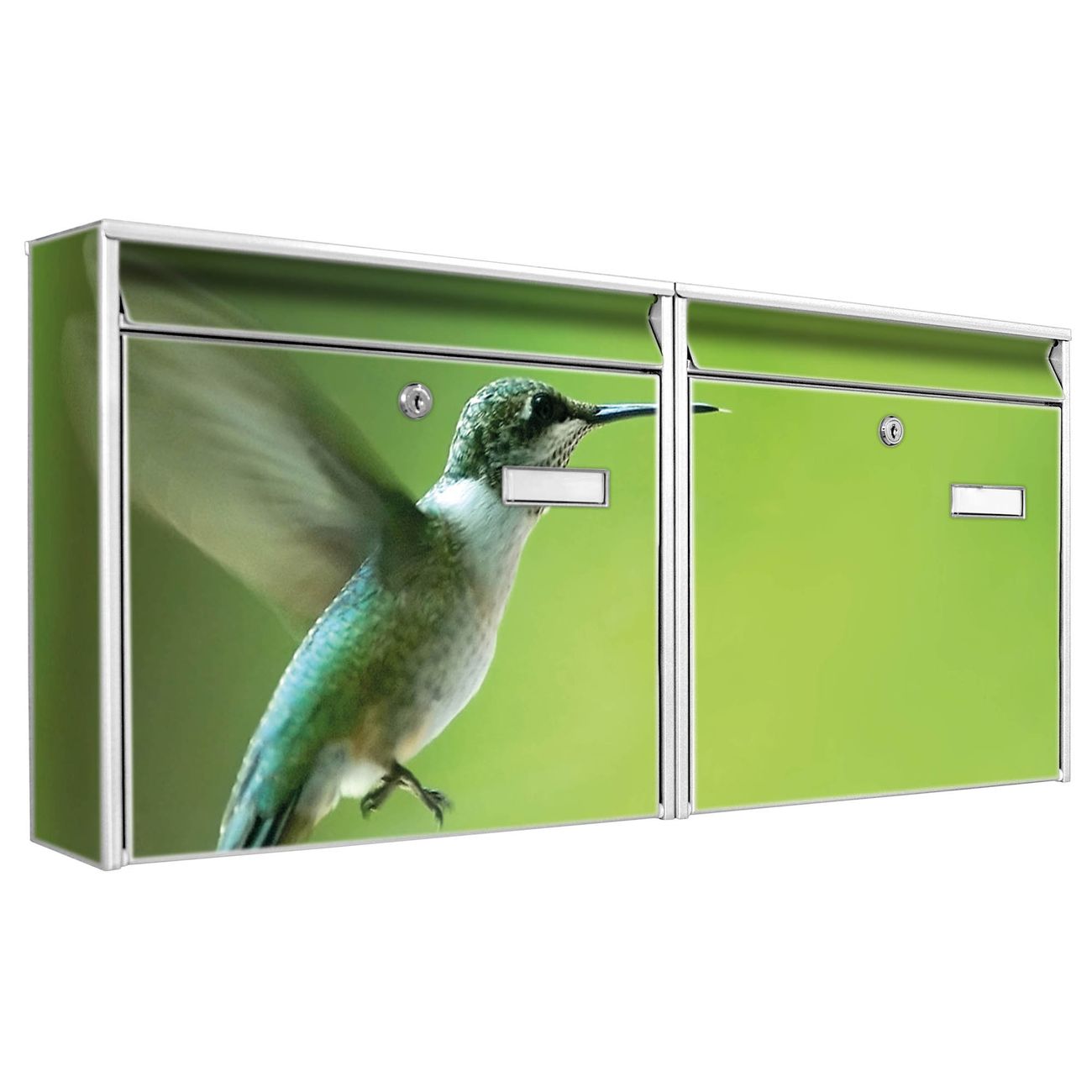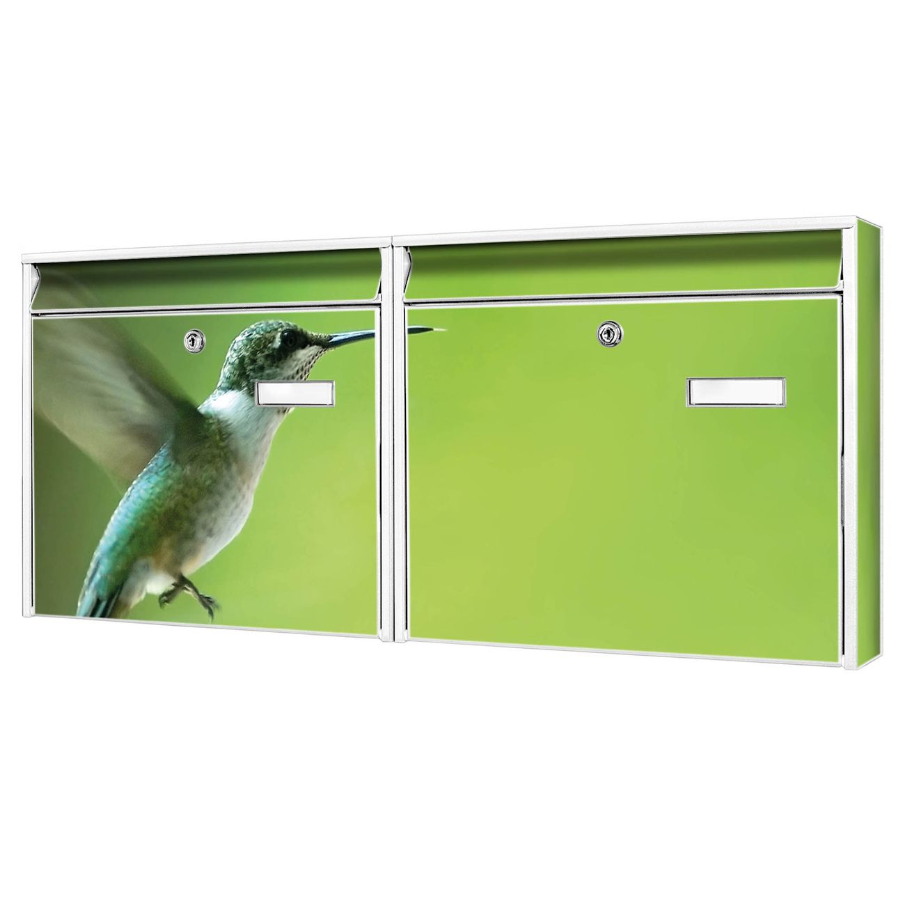 FUNKTION: Die Burg Wächter doppel Briefkastenanlage mit Motiv Kolibri bietet Ihnen ein großes Fassungsvermögen, sodass auch A4 Sendungen eingeworfen werden können. Das Namensschild lässt sich individuell beschriften. DESIGN: Die 2 Briefkästen mit Kolibri Motiv haben ein sehr ansprechendes und zeitloses Design. Heben Sie Sich von der tristen grauen Masse ab, ohne auf Funktionalität zu verzichten. Sie erhalten 2 Schlüssel sowie das Montagematerial. DETAILS: Der Doppelbriefkasten besteht aus verzinktem Stahl weiß. Er ist 72,5cm x 32,2cm x 10cm groß. Das Motiv besteht aus einer wetter- und UV-festen Folie, die Ihren Briefkasten zusätzlich vor Kratzern schützt. NUTZEN: Die stabile Bauart sowie die Wetterfestigkeit machen diese doppel Briefkästen zu einem zuverlässigen Begleiter im Alltag. Effektvoll in Reihe gehangen schmückt die Anlage jede Hauswand. BANJADO: Ihr Briefkasten wird in Sachsen in einer kleinen Manufaktur von Hand veredelt. Die Motivfolie ist lösungsmittelfrei und schutzlaminiert für einen langen Halt. Wir legen großen Wert auf die Verbindung von Funktionalität und Design. Sie erhalten Handarbeit aus Sachsen.
