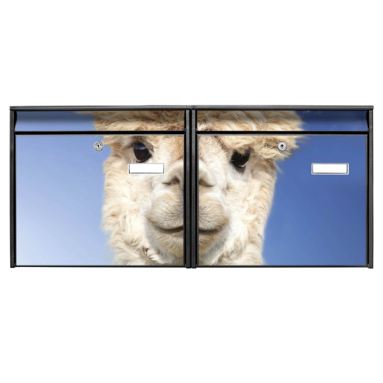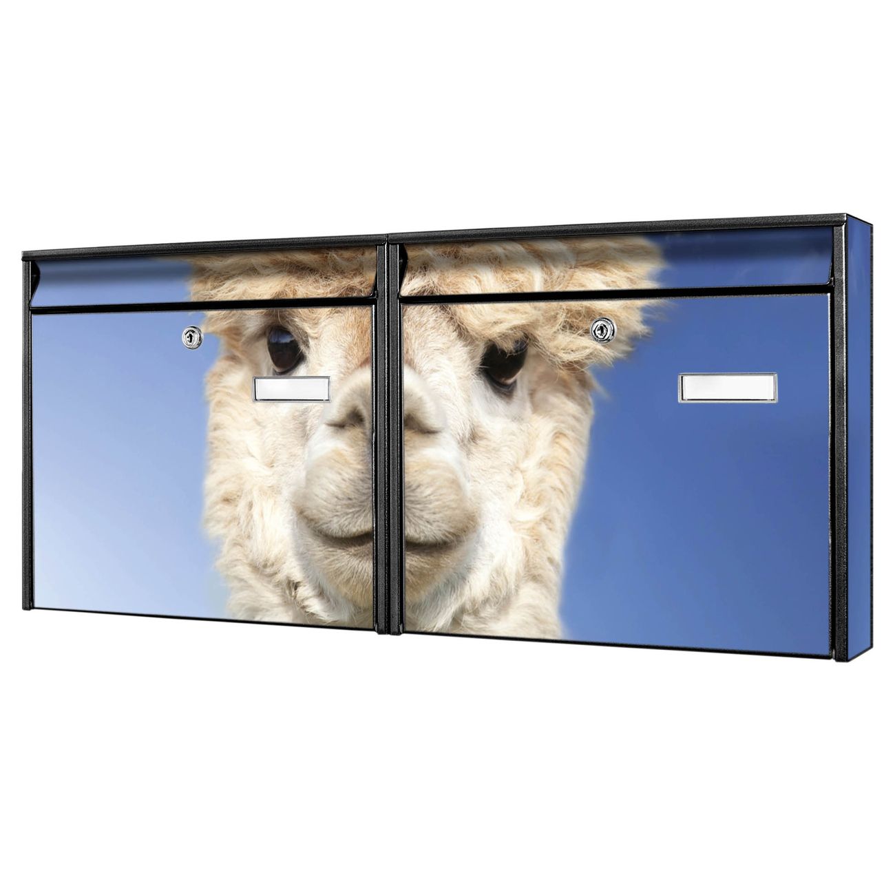 FUNKTION: Die Burg Wächter doppel Briefkastenanlage mit Motiv Lama bietet Ihnen ein großes Fassungsvermögen, sodass auch A4 Sendungen eingeworfen werden können. Das Namensschild lässt sich individuell beschriften. DESIGN: Die 2 Briefkästen mit Lama Motiv haben ein sehr ansprechendes und zeitloses Design. Heben Sie Sich von der tristen grauen Masse ab, ohne auf Funktionalität zu verzichten. Sie erhalten 2 Schlüssel sowie das Montagematerial. DETAILS: Der Doppelbriefkasten besteht aus verzinktem Stahl weiß. Er ist 72,5cm x 32,2cm x 10cm groß. Das Motiv besteht aus einer wetter- und UV-festen Folie, die Ihren Briefkasten zusätzlich vor Kratzern schützt. NUTZEN: Die stabile Bauart sowie die Wetterfestigkeit machen diese doppel Briefkästen zu einem zuverlässigen Begleiter im Alltag. Effektvoll in Reihe gehangen schmückt die Anlage jede Hauswand. BANJADO: Ihr Briefkasten wird in Sachsen in einer kleinen Manufaktur von Hand veredelt. Die Motivfolie ist lösungsmittelfrei und schutzlaminiert für einen langen Halt. Wir legen großen Wert auf die Verbindung von Funktionalität und Design. Sie erhalten Handarbeit aus Sachsen.