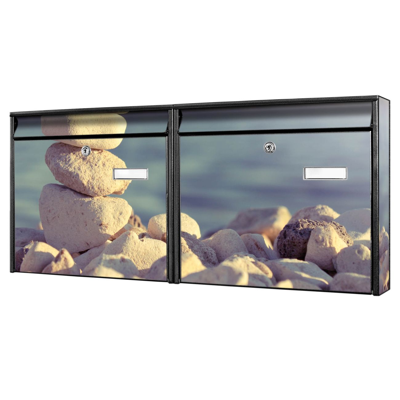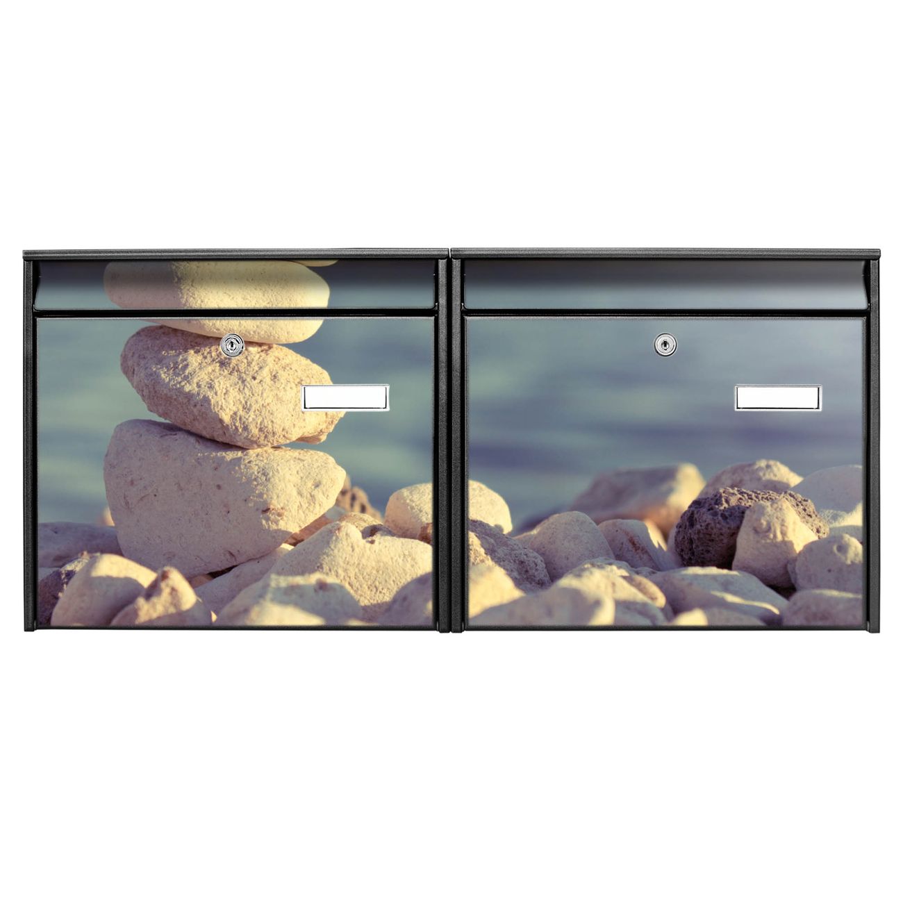 FUNKTION: Die Burg Wächter doppel Briefkastenanlage mit Motiv Leichte Steine bietet Ihnen ein großes Fassungsvermögen, sodass auch A4 Sendungen eingeworfen werden können. Das Namensschild lässt sich individuell beschriften. DESIGN: Die 2 Briefkästen mit Leichte Steine Motiv haben ein sehr ansprechendes und zeitloses Design. Heben Sie Sich von der tristen grauen Masse ab, ohne auf Funktionalität zu verzichten. Sie erhalten 2 Schlüssel sowie das Montagematerial. DETAILS: Der Doppelbriefkasten besteht aus verzinktem Stahl weiß. Er ist 72,5cm x 32,2cm x 10cm groß. Das Motiv besteht aus einer wetter- und UV-festen Folie, die Ihren Briefkasten zusätzlich vor Kratzern schützt. NUTZEN: Die stabile Bauart sowie die Wetterfestigkeit machen diese doppel Briefkästen zu einem zuverlässigen Begleiter im Alltag. Effektvoll in Reihe gehangen schmückt die Anlage jede Hauswand. BANJADO: Ihr Briefkasten wird in Sachsen in einer kleinen Manufaktur von Hand veredelt. Die Motivfolie ist lösungsmittelfrei und schutzlaminiert für einen langen Halt. Wir legen großen Wert auf die Verbindung von Funktionalität und Design. Sie erhalten Handarbeit aus Sachsen.