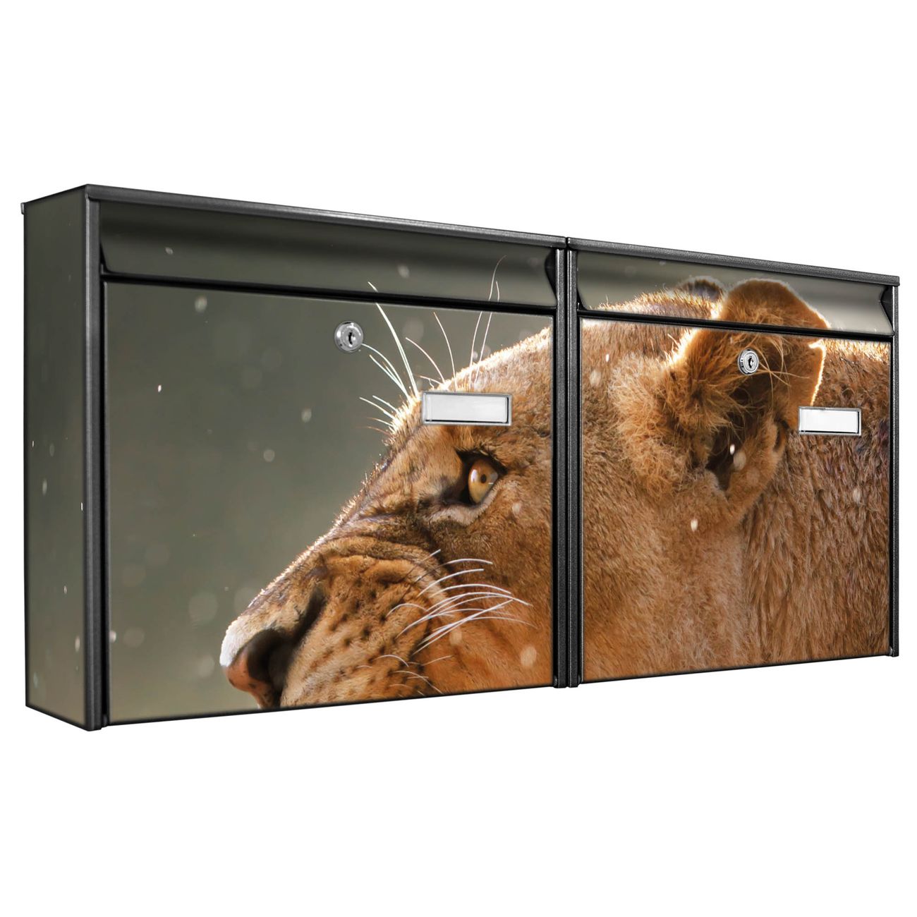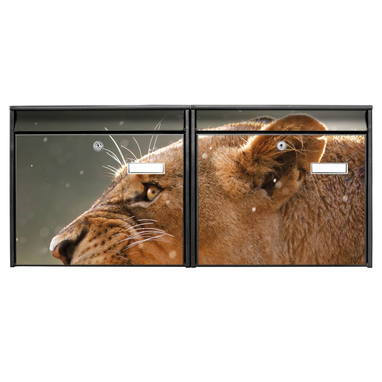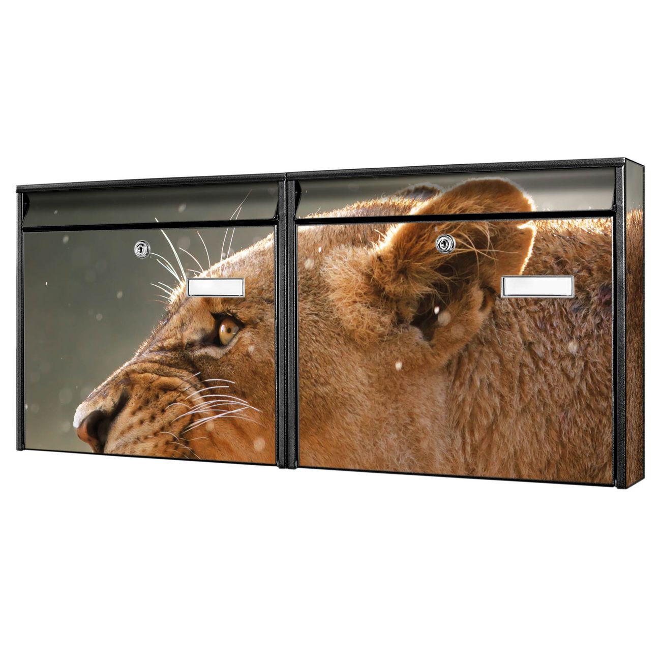 FUNKTION: Die Burg Wächter doppel Briefkastenanlage mit Motiv Löwin bietet Ihnen ein großes Fassungsvermögen, sodass auch A4 Sendungen eingeworfen werden können. Das Namensschild lässt sich individuell beschriften. DESIGN: Die 2 Briefkästen mit Löwin Motiv haben ein sehr ansprechendes und zeitloses Design. Heben Sie Sich von der tristen grauen Masse ab, ohne auf Funktionalität zu verzichten. Sie erhalten 2 Schlüssel sowie das Montagematerial. DETAILS: Der Doppelbriefkasten besteht aus verzinktem Stahl weiß. Er ist 72,5cm x 32,2cm x 10cm groß. Das Motiv besteht aus einer wetter- und UV-festen Folie, die Ihren Briefkasten zusätzlich vor Kratzern schützt. NUTZEN: Die stabile Bauart sowie die Wetterfestigkeit machen diese doppel Briefkästen zu einem zuverlässigen Begleiter im Alltag. Effektvoll in Reihe gehangen schmückt die Anlage jede Hauswand. BANJADO: Ihr Briefkasten wird in Sachsen in einer kleinen Manufaktur von Hand veredelt. Die Motivfolie ist lösungsmittelfrei und schutzlaminiert für einen langen Halt. Wir legen großen Wert auf die Verbindung von Funktionalität und Design. Sie erhalten Handarbeit aus Sachsen.