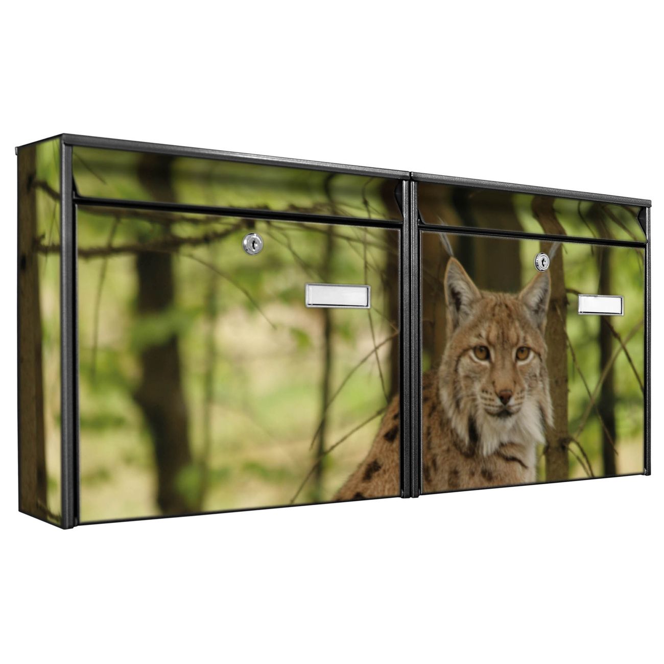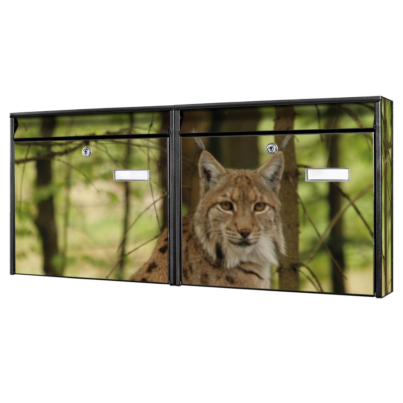 FUNKTION: Die Burg Wächter doppel Briefkastenanlage mit Motiv Luchs bietet Ihnen ein großes Fassungsvermögen, sodass auch A4 Sendungen eingeworfen werden können. Das Namensschild lässt sich individuell beschriften. DESIGN: Die 2 Briefkästen mit Luchs Motiv haben ein sehr ansprechendes und zeitloses Design. Heben Sie Sich von der tristen grauen Masse ab, ohne auf Funktionalität zu verzichten. Sie erhalten 2 Schlüssel sowie das Montagematerial. DETAILS: Der Doppelbriefkasten besteht aus verzinktem Stahl weiß. Er ist 72,5cm x 32,2cm x 10cm groß. Das Motiv besteht aus einer wetter- und UV-festen Folie, die Ihren Briefkasten zusätzlich vor Kratzern schützt. NUTZEN: Die stabile Bauart sowie die Wetterfestigkeit machen diese doppel Briefkästen zu einem zuverlässigen Begleiter im Alltag. Effektvoll in Reihe gehangen schmückt die Anlage jede Hauswand. BANJADO: Ihr Briefkasten wird in Sachsen in einer kleinen Manufaktur von Hand veredelt. Die Motivfolie ist lösungsmittelfrei und schutzlaminiert für einen langen Halt. Wir legen großen Wert auf die Verbindung von Funktionalität und Design. Sie erhalten Handarbeit aus Sachsen.