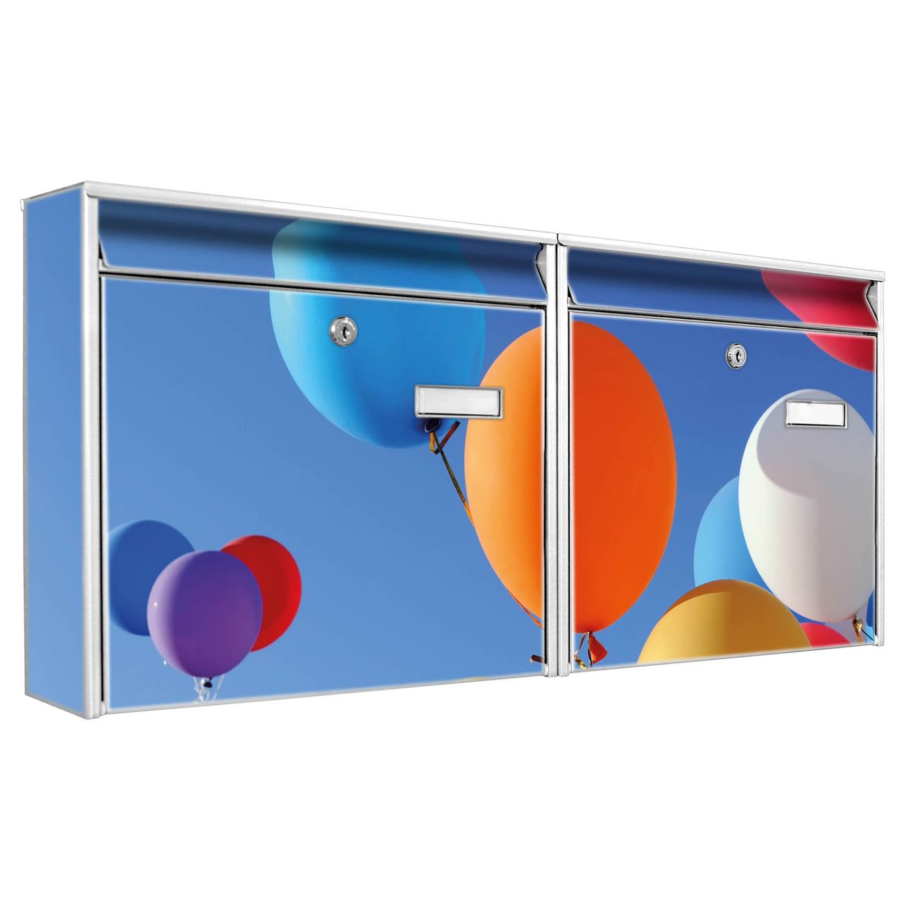 FUNKTION: Die Burg Wächter doppel Briefkastenanlage mit Motiv Luftballons bietet Ihnen ein großes Fassungsvermögen, sodass auch A4 Sendungen eingeworfen werden können. Das Namensschild lässt sich individuell beschriften. DESIGN: Die 2 Briefkästen mit Luftballons Motiv haben ein sehr ansprechendes und zeitloses Design. Heben Sie Sich von der tristen grauen Masse ab, ohne auf Funktionalität zu verzichten. Sie erhalten 2 Schlüssel sowie das Montagematerial. DETAILS: Der Doppelbriefkasten besteht aus verzinktem Stahl weiß. Er ist 72,5cm x 32,2cm x 10cm groß. Das Motiv besteht aus einer wetter- und UV-festen Folie, die Ihren Briefkasten zusätzlich vor Kratzern schützt. NUTZEN: Die stabile Bauart sowie die Wetterfestigkeit machen diese doppel Briefkästen zu einem zuverlässigen Begleiter im Alltag. Effektvoll in Reihe gehangen schmückt die Anlage jede Hauswand. BANJADO: Ihr Briefkasten wird in Sachsen in einer kleinen Manufaktur von Hand veredelt. Die Motivfolie ist lösungsmittelfrei und schutzlaminiert für einen langen Halt. Wir legen großen Wert auf die Verbindung von Funktionalität und Design. Sie erhalten Handarbeit aus Sachsen.
