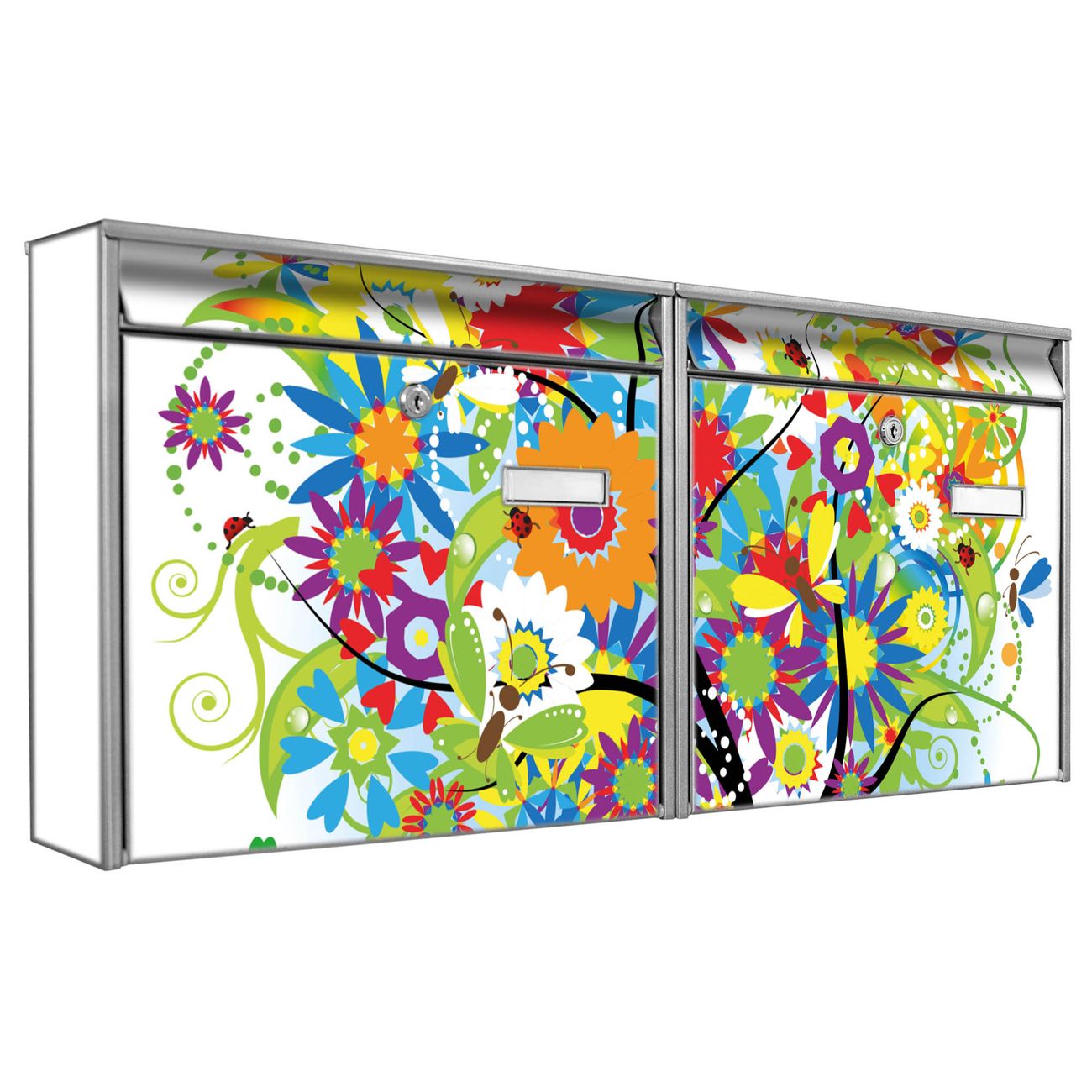 FUNKTION: Die Burg Wächter doppel Briefkastenanlage mit Motiv Märchenzauberbaum bietet Ihnen ein großes Fassungsvermögen, sodass auch A4 Sendungen eingeworfen werden können. Das Namensschild lässt sich individuell beschriften. DESIGN: Die 2 Briefkästen mit Märchenzauberbaum Motiv haben ein sehr ansprechendes und zeitloses Design. Heben Sie Sich von der tristen grauen Masse ab, ohne auf Funktionalität zu verzichten. Sie erhalten 2 Schlüssel sowie das Montagematerial. DETAILS: Der Doppelbriefkasten besteht aus verzinktem Stahl weiß. Er ist 72,5cm x 32,2cm x 10cm groß. Das Motiv besteht aus einer wetter- und UV-festen Folie, die Ihren Briefkasten zusätzlich vor Kratzern schützt. NUTZEN: Die stabile Bauart sowie die Wetterfestigkeit machen diese doppel Briefkästen zu einem zuverlässigen Begleiter im Alltag. Effektvoll in Reihe gehangen schmückt die Anlage jede Hauswand. BANJADO: Ihr Briefkasten wird in Sachsen in einer kleinen Manufaktur von Hand veredelt. Die Motivfolie ist lösungsmittelfrei und schutzlaminiert für einen langen Halt. Wir legen großen Wert auf die Verbindung von Funktionalität und Design. Sie erhalten Handarbeit aus Sachsen.