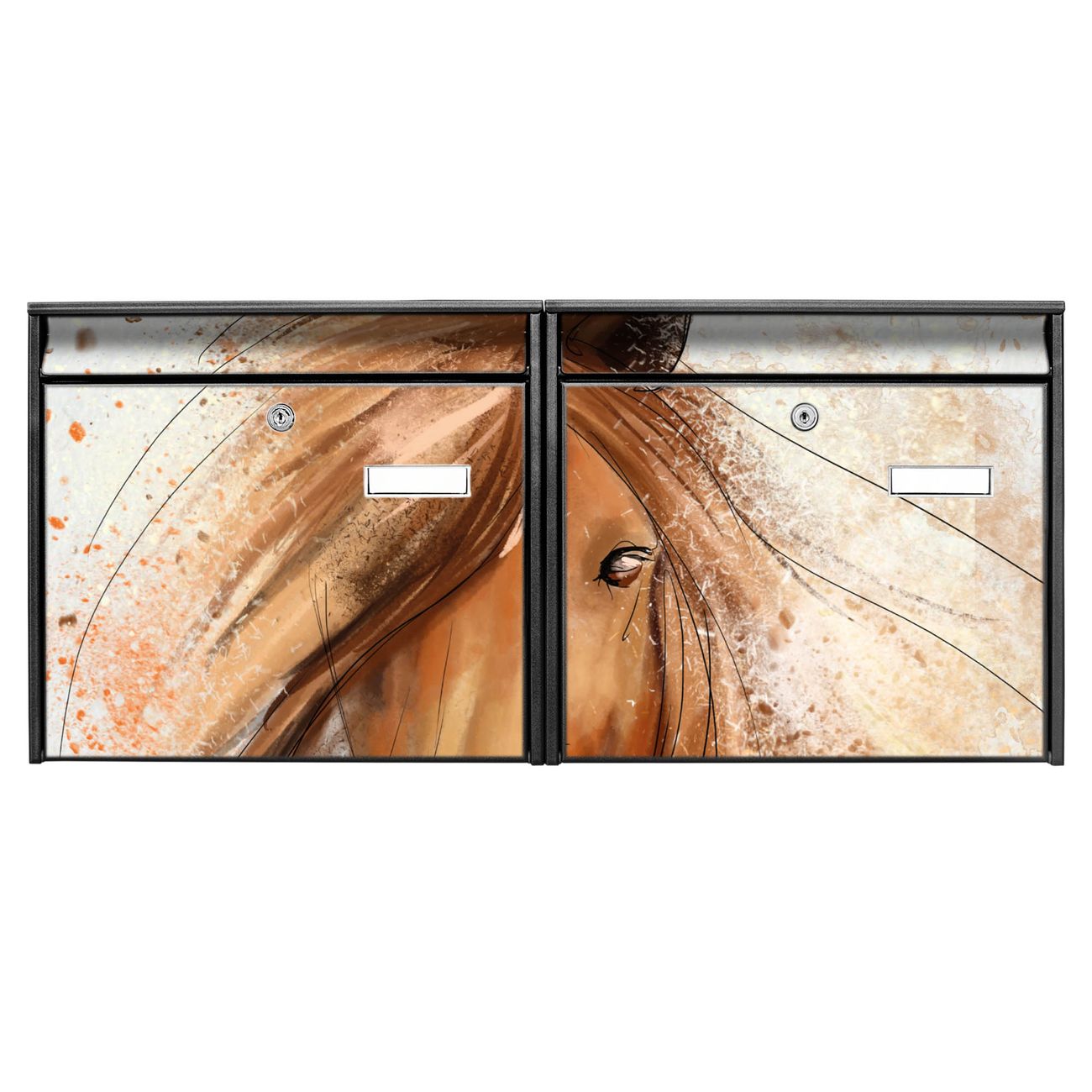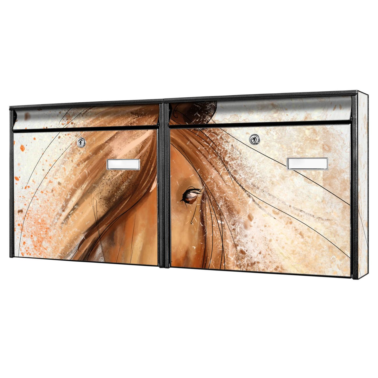 FUNKTION: Die Burg Wächter doppel Briefkastenanlage mit Motiv Magic Horse bietet Ihnen ein großes Fassungsvermögen, sodass auch A4 Sendungen eingeworfen werden können. Das Namensschild lässt sich individuell beschriften. DESIGN: Die 2 Briefkästen mit Magic Horse Motiv haben ein sehr ansprechendes und zeitloses Design. Heben Sie Sich von der tristen grauen Masse ab, ohne auf Funktionalität zu verzichten. Sie erhalten 2 Schlüssel sowie das Montagematerial. DETAILS: Der Doppelbriefkasten besteht aus verzinktem Stahl weiß. Er ist 72,5cm x 32,2cm x 10cm groß. Das Motiv besteht aus einer wetter- und UV-festen Folie, die Ihren Briefkasten zusätzlich vor Kratzern schützt. NUTZEN: Die stabile Bauart sowie die Wetterfestigkeit machen diese doppel Briefkästen zu einem zuverlässigen Begleiter im Alltag. Effektvoll in Reihe gehangen schmückt die Anlage jede Hauswand. BANJADO: Ihr Briefkasten wird in Sachsen in einer kleinen Manufaktur von Hand veredelt. Die Motivfolie ist lösungsmittelfrei und schutzlaminiert für einen langen Halt. Wir legen großen Wert auf die Verbindung von Funktionalität und Design. Sie erhalten Handarbeit aus Sachsen.