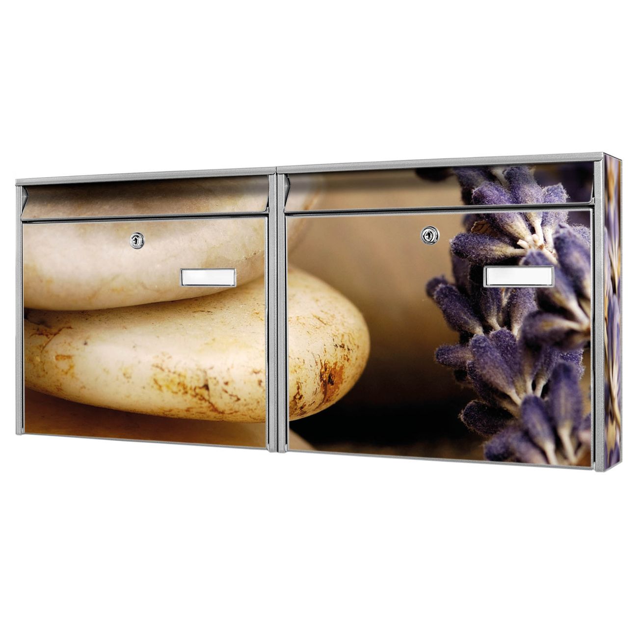 FUNKTION: Die Burg Wächter doppel Briefkastenanlage mit Motiv Meditation bietet Ihnen ein großes Fassungsvermögen, sodass auch A4 Sendungen eingeworfen werden können. Das Namensschild lässt sich individuell beschriften. DESIGN: Die 2 Briefkästen mit Meditation Motiv haben ein sehr ansprechendes und zeitloses Design. Heben Sie Sich von der tristen grauen Masse ab, ohne auf Funktionalität zu verzichten. Sie erhalten 2 Schlüssel sowie das Montagematerial. DETAILS: Der Doppelbriefkasten besteht aus verzinktem Stahl weiß. Er ist 72,5cm x 32,2cm x 10cm groß. Das Motiv besteht aus einer wetter- und UV-festen Folie, die Ihren Briefkasten zusätzlich vor Kratzern schützt. NUTZEN: Die stabile Bauart sowie die Wetterfestigkeit machen diese doppel Briefkästen zu einem zuverlässigen Begleiter im Alltag. Effektvoll in Reihe gehangen schmückt die Anlage jede Hauswand. BANJADO: Ihr Briefkasten wird in Sachsen in einer kleinen Manufaktur von Hand veredelt. Die Motivfolie ist lösungsmittelfrei und schutzlaminiert für einen langen Halt. Wir legen großen Wert auf die Verbindung von Funktionalität und Design. Sie erhalten Handarbeit aus Sachsen.