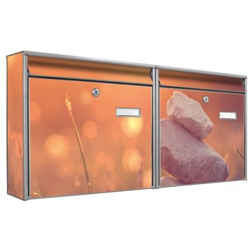 FUNKTION: Die Burg Wächter doppel Briefkastenanlage mit Motiv Mein Ort bietet Ihnen ein großes Fassungsvermögen, sodass auch A4 Sendungen eingeworfen werden können. Das Namensschild lässt sich individuell beschriften. DESIGN: Die 2 Briefkästen mit Mein Ort Motiv haben ein sehr ansprechendes und zeitloses Design. Heben Sie Sich von der tristen grauen Masse ab, ohne auf Funktionalität zu verzichten. Sie erhalten 2 Schlüssel sowie das Montagematerial. DETAILS: Der Doppelbriefkasten besteht aus verzinktem Stahl weiß. Er ist 72,5cm x 32,2cm x 10cm groß. Das Motiv besteht aus einer wetter- und UV-festen Folie, die Ihren Briefkasten zusätzlich vor Kratzern schützt. NUTZEN: Die stabile Bauart sowie die Wetterfestigkeit machen diese doppel Briefkästen zu einem zuverlässigen Begleiter im Alltag. Effektvoll in Reihe gehangen schmückt die Anlage jede Hauswand. BANJADO: Ihr Briefkasten wird in Sachsen in einer kleinen Manufaktur von Hand veredelt. Die Motivfolie ist lösungsmittelfrei und schutzlaminiert für einen langen Halt. Wir legen großen Wert auf die Verbindung von Funktionalität und Design. Sie erhalten Handarbeit aus Sachsen.