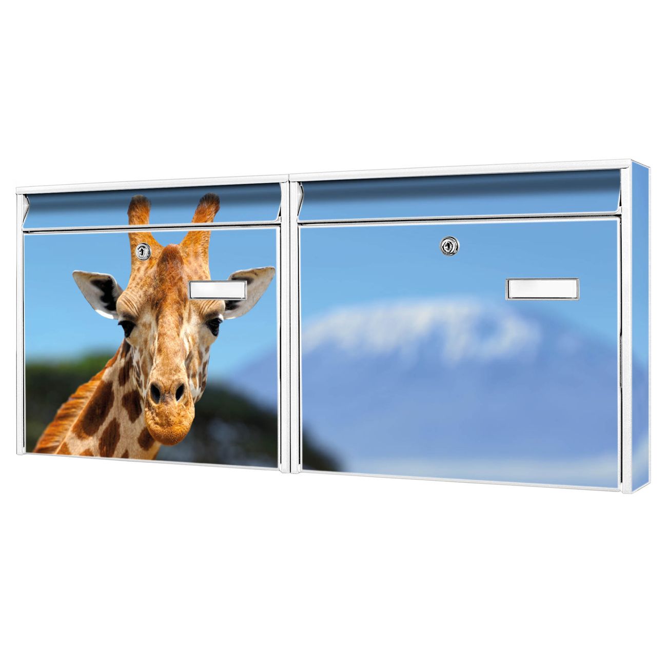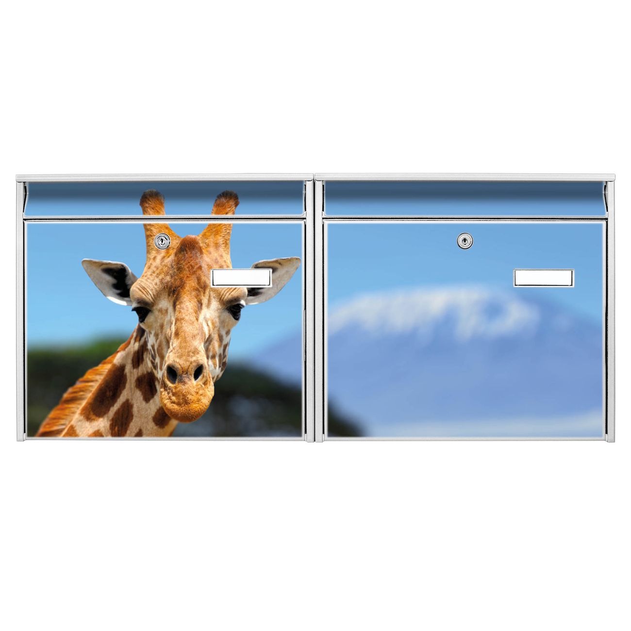FUNKTION: Die Burg Wächter doppel Briefkastenanlage mit Motiv Miss Kilimandscharo bietet Ihnen ein großes Fassungsvermögen, sodass auch A4 Sendungen eingeworfen werden können. Das Namensschild lässt sich individuell beschriften. DESIGN: Die 2 Briefkästen mit Miss Kilimandscharo Motiv haben ein sehr ansprechendes und zeitloses Design. Heben Sie Sich von der tristen grauen Masse ab, ohne auf Funktionalität zu verzichten. Sie erhalten 2 Schlüssel sowie das Montagematerial. DETAILS: Der Doppelbriefkasten besteht aus verzinktem Stahl weiß. Er ist 72,5cm x 32,2cm x 10cm groß. Das Motiv besteht aus einer wetter- und UV-festen Folie, die Ihren Briefkasten zusätzlich vor Kratzern schützt. NUTZEN: Die stabile Bauart sowie die Wetterfestigkeit machen diese doppel Briefkästen zu einem zuverlässigen Begleiter im Alltag. Effektvoll in Reihe gehangen schmückt die Anlage jede Hauswand. BANJADO: Ihr Briefkasten wird in Sachsen in einer kleinen Manufaktur von Hand veredelt. Die Motivfolie ist lösungsmittelfrei und schutzlaminiert für einen langen Halt. Wir legen großen Wert auf die Verbindung von Funktionalität und Design. Sie erhalten Handarbeit aus Sachsen.