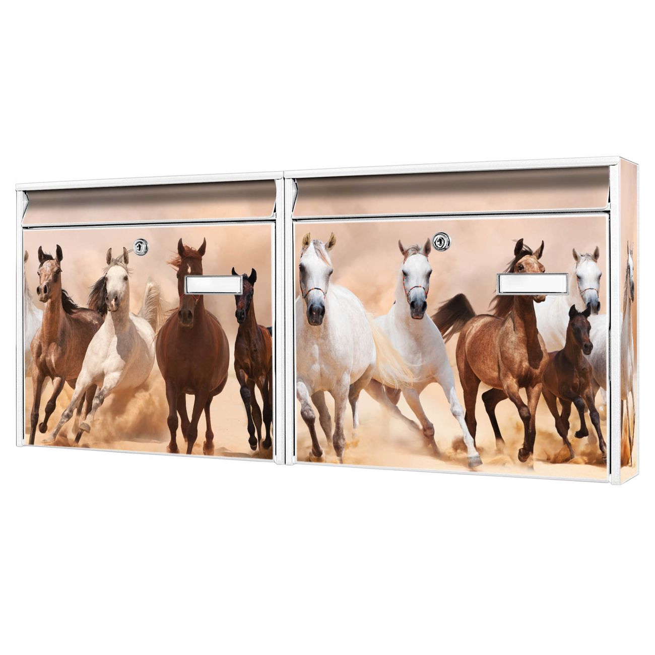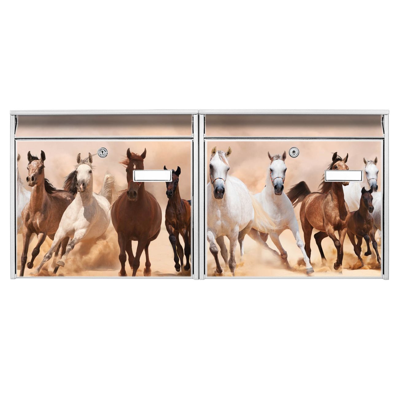 FUNKTION: Die Burg Wächter doppel Briefkastenanlage mit Motiv Mongolische Stimmung bietet Ihnen ein großes Fassungsvermögen, sodass auch A4 Sendungen eingeworfen werden können. Das Namensschild lässt sich individuell beschriften. DESIGN: Die 2 Briefkästen mit Mongolische Stimmung Motiv haben ein sehr ansprechendes und zeitloses Design. Heben Sie Sich von der tristen grauen Masse ab, ohne auf Funktionalität zu verzichten. Sie erhalten 2 Schlüssel sowie das Montagematerial. DETAILS: Der Doppelbriefkasten besteht aus verzinktem Stahl weiß. Er ist 72,5cm x 32,2cm x 10cm groß. Das Motiv besteht aus einer wetter- und UV-festen Folie, die Ihren Briefkasten zusätzlich vor Kratzern schützt. NUTZEN: Die stabile Bauart sowie die Wetterfestigkeit machen diese doppel Briefkästen zu einem zuverlässigen Begleiter im Alltag. Effektvoll in Reihe gehangen schmückt die Anlage jede Hauswand. BANJADO: Ihr Briefkasten wird in Sachsen in einer kleinen Manufaktur von Hand veredelt. Die Motivfolie ist lösungsmittelfrei und schutzlaminiert für einen langen Halt. Wir legen großen Wert auf die Verbindung von Funktionalität und Design. Sie erhalten Handarbeit aus Sachsen.
