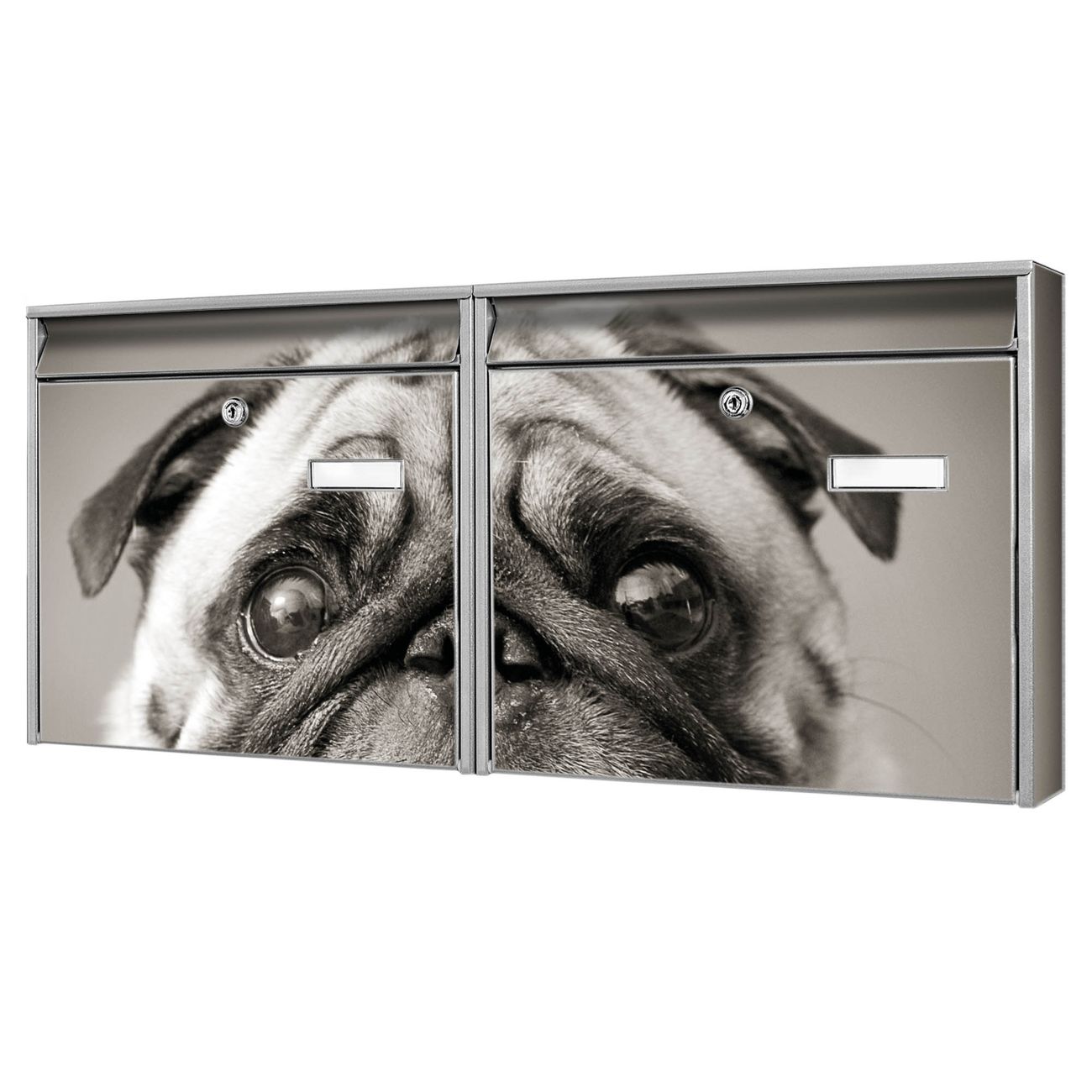 Doppelbriefkasten quer Mops Porträt