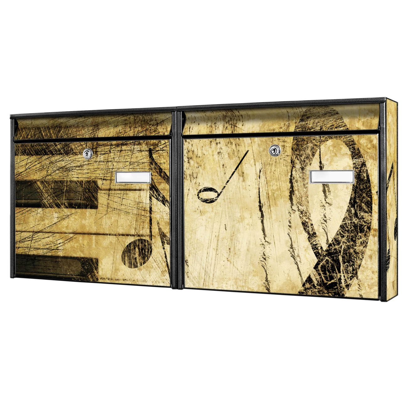 FUNKTION: Die Burg Wächter doppel Briefkastenanlage mit Motiv Music bietet Ihnen ein großes Fassungsvermögen, sodass auch A4 Sendungen eingeworfen werden können. Das Namensschild lässt sich individuell beschriften. DESIGN: Die 2 Briefkästen mit Music Motiv haben ein sehr ansprechendes und zeitloses Design. Heben Sie Sich von der tristen grauen Masse ab, ohne auf Funktionalität zu verzichten. Sie erhalten 2 Schlüssel sowie das Montagematerial. DETAILS: Der Doppelbriefkasten besteht aus verzinktem Stahl weiß. Er ist 72,5cm x 32,2cm x 10cm groß. Das Motiv besteht aus einer wetter- und UV-festen Folie, die Ihren Briefkasten zusätzlich vor Kratzern schützt. NUTZEN: Die stabile Bauart sowie die Wetterfestigkeit machen diese doppel Briefkästen zu einem zuverlässigen Begleiter im Alltag. Effektvoll in Reihe gehangen schmückt die Anlage jede Hauswand. BANJADO: Ihr Briefkasten wird in Sachsen in einer kleinen Manufaktur von Hand veredelt. Die Motivfolie ist lösungsmittelfrei und schutzlaminiert für einen langen Halt. Wir legen großen Wert auf die Verbindung von Funktionalität und Design. Sie erhalten Handarbeit aus Sachsen.