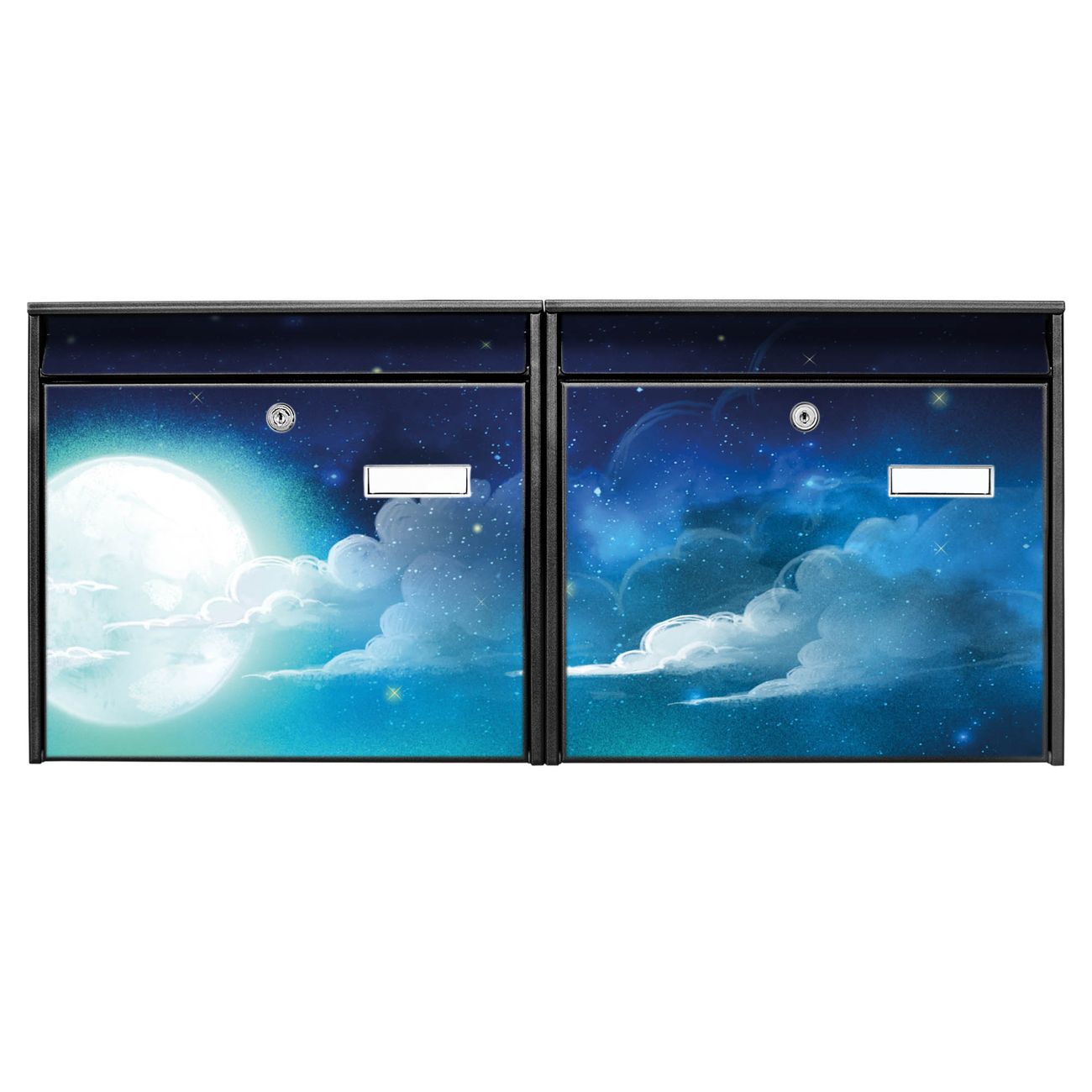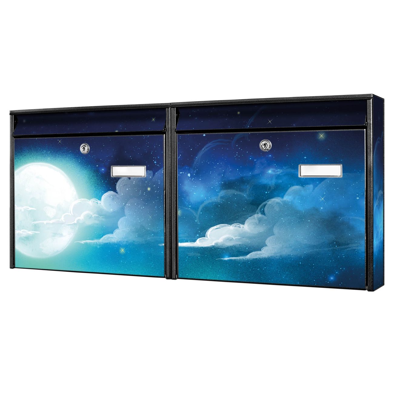 FUNKTION: Die Burg Wächter doppel Briefkastenanlage mit Motiv Nachthimmel 1 bietet Ihnen ein großes Fassungsvermögen, sodass auch A4 Sendungen eingeworfen werden können. Das Namensschild lässt sich individuell beschriften. DESIGN: Die 2 Briefkästen mit Nachthimmel 1 Motiv haben ein sehr ansprechendes und zeitloses Design. Heben Sie Sich von der tristen grauen Masse ab, ohne auf Funktionalität zu verzichten. Sie erhalten 2 Schlüssel sowie das Montagematerial. DETAILS: Der Doppelbriefkasten besteht aus verzinktem Stahl weiß. Er ist 72,5cm x 32,2cm x 10cm groß. Das Motiv besteht aus einer wetter- und UV-festen Folie, die Ihren Briefkasten zusätzlich vor Kratzern schützt. NUTZEN: Die stabile Bauart sowie die Wetterfestigkeit machen diese doppel Briefkästen zu einem zuverlässigen Begleiter im Alltag. Effektvoll in Reihe gehangen schmückt die Anlage jede Hauswand. BANJADO: Ihr Briefkasten wird in Sachsen in einer kleinen Manufaktur von Hand veredelt. Die Motivfolie ist lösungsmittelfrei und schutzlaminiert für einen langen Halt. Wir legen großen Wert auf die Verbindung von Funktionalität und Design. Sie erhalten Handarbeit aus Sachsen.