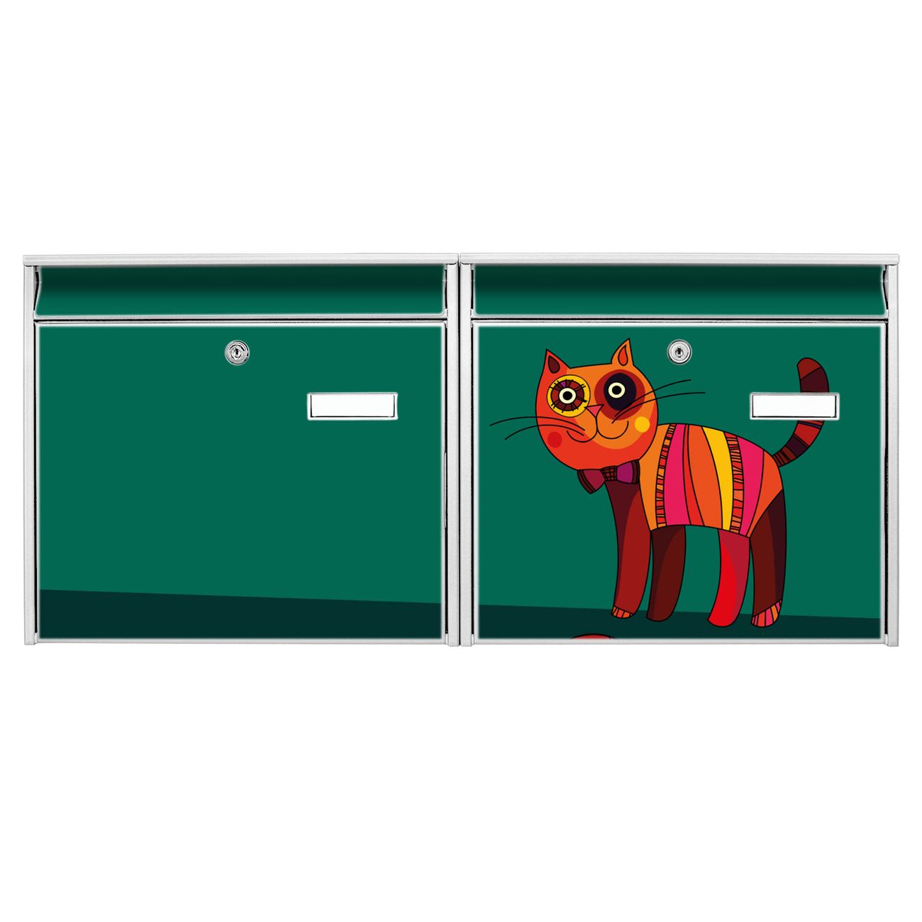 FUNKTION: Die Burg Wächter doppel Briefkastenanlage mit Motiv Orange Katze bietet Ihnen ein großes Fassungsvermögen, sodass auch A4 Sendungen eingeworfen werden können. Das Namensschild lässt sich individuell beschriften. DESIGN: Die 2 Briefkästen mit Orange Katze Motiv haben ein sehr ansprechendes und zeitloses Design. Heben Sie Sich von der tristen grauen Masse ab, ohne auf Funktionalität zu verzichten. Sie erhalten 2 Schlüssel sowie das Montagematerial. DETAILS: Der Doppelbriefkasten besteht aus verzinktem Stahl weiß. Er ist 72,5cm x 32,2cm x 10cm groß. Das Motiv besteht aus einer wetter- und UV-festen Folie, die Ihren Briefkasten zusätzlich vor Kratzern schützt. NUTZEN: Die stabile Bauart sowie die Wetterfestigkeit machen diese doppel Briefkästen zu einem zuverlässigen Begleiter im Alltag. Effektvoll in Reihe gehangen schmückt die Anlage jede Hauswand. BANJADO: Ihr Briefkasten wird in Sachsen in einer kleinen Manufaktur von Hand veredelt. Die Motivfolie ist lösungsmittelfrei und schutzlaminiert für einen langen Halt. Wir legen großen Wert auf die Verbindung von Funktionalität und Design. Sie erhalten Handarbeit aus Sachsen.