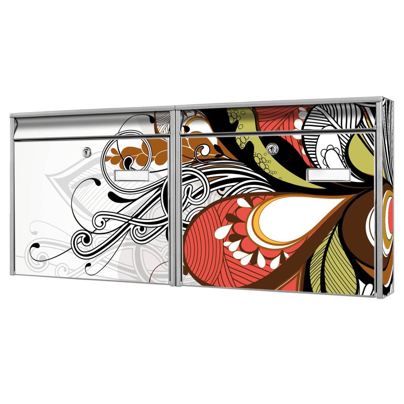 FUNKTION: Die Burg Wächter doppel Briefkastenanlage mit Motiv Ornament 2 bietet Ihnen ein großes Fassungsvermögen, sodass auch A4 Sendungen eingeworfen werden können. Das Namensschild lässt sich individuell beschriften. DESIGN: Die 2 Briefkästen mit Ornament 2 Motiv haben ein sehr ansprechendes und zeitloses Design. Heben Sie Sich von der tristen grauen Masse ab, ohne auf Funktionalität zu verzichten. Sie erhalten 2 Schlüssel sowie das Montagematerial. DETAILS: Der Doppelbriefkasten besteht aus verzinktem Stahl weiß. Er ist 72,5cm x 32,2cm x 10cm groß. Das Motiv besteht aus einer wetter- und UV-festen Folie, die Ihren Briefkasten zusätzlich vor Kratzern schützt. NUTZEN: Die stabile Bauart sowie die Wetterfestigkeit machen diese doppel Briefkästen zu einem zuverlässigen Begleiter im Alltag. Effektvoll in Reihe gehangen schmückt die Anlage jede Hauswand. BANJADO: Ihr Briefkasten wird in Sachsen in einer kleinen Manufaktur von Hand veredelt. Die Motivfolie ist lösungsmittelfrei und schutzlaminiert für einen langen Halt. Wir legen großen Wert auf die Verbindung von Funktionalität und Design. Sie erhalten Handarbeit aus Sachsen.