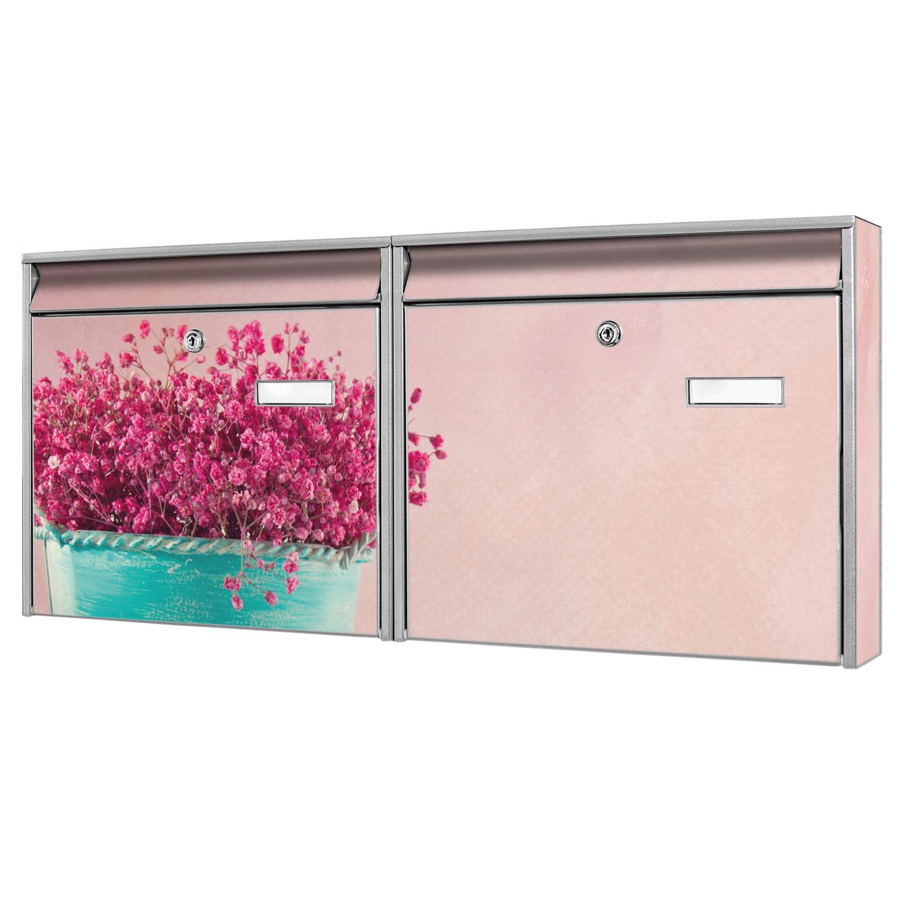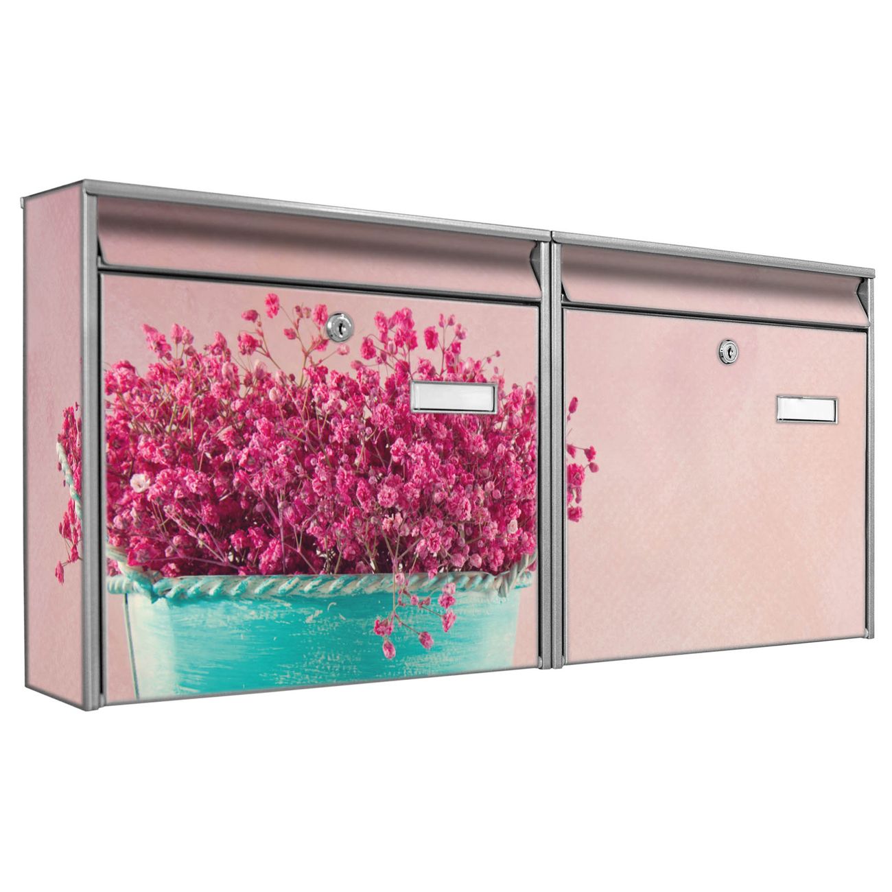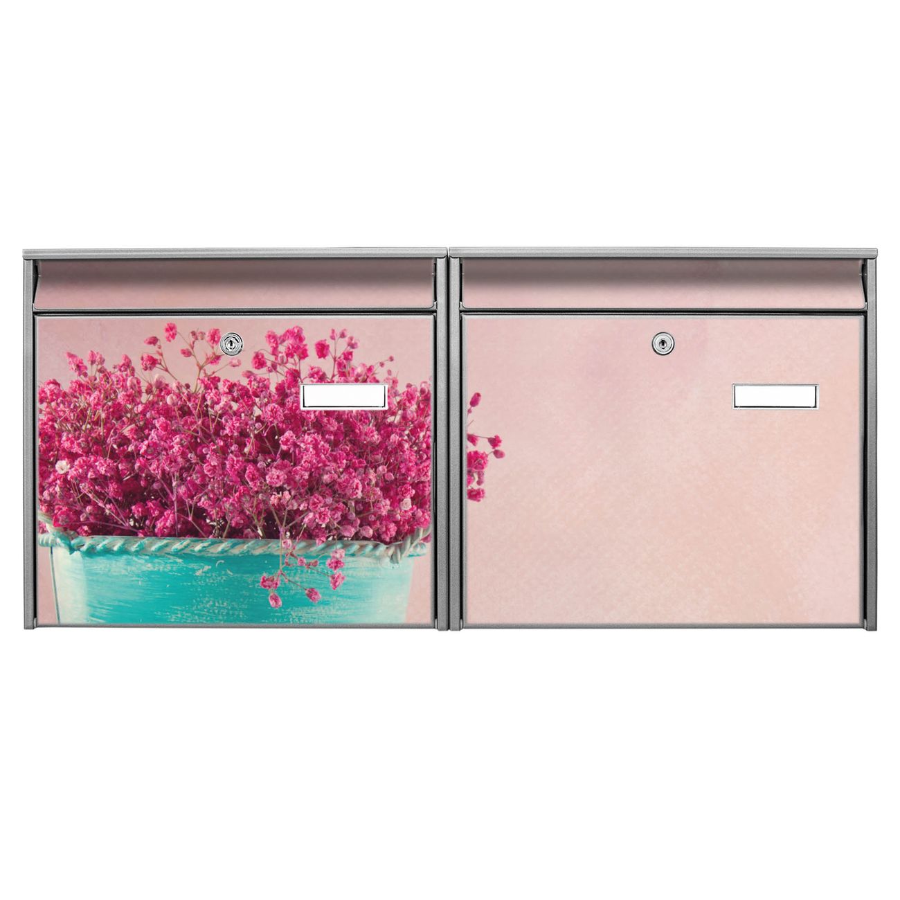 FUNKTION: Die Burg Wächter doppel Briefkastenanlage mit Motiv Pinke Trockenblumen bietet Ihnen ein großes Fassungsvermögen, sodass auch A4 Sendungen eingeworfen werden können. Das Namensschild lässt sich individuell beschriften. DESIGN: Die 2 Briefkästen mit Pinke Trockenblumen Motiv haben ein sehr ansprechendes und zeitloses Design. Heben Sie Sich von der tristen grauen Masse ab, ohne auf Funktionalität zu verzichten. Sie erhalten 2 Schlüssel sowie das Montagematerial. DETAILS: Der Doppelbriefkasten besteht aus verzinktem Stahl weiß. Er ist 72,5cm x 32,2cm x 10cm groß. Das Motiv besteht aus einer wetter- und UV-festen Folie, die Ihren Briefkasten zusätzlich vor Kratzern schützt. NUTZEN: Die stabile Bauart sowie die Wetterfestigkeit machen diese doppel Briefkästen zu einem zuverlässigen Begleiter im Alltag. Effektvoll in Reihe gehangen schmückt die Anlage jede Hauswand. BANJADO: Ihr Briefkasten wird in Sachsen in einer kleinen Manufaktur von Hand veredelt. Die Motivfolie ist lösungsmittelfrei und schutzlaminiert für einen langen Halt. Wir legen großen Wert auf die Verbindung von Funktionalität und Design. Sie erhalten Handarbeit aus Sachsen.