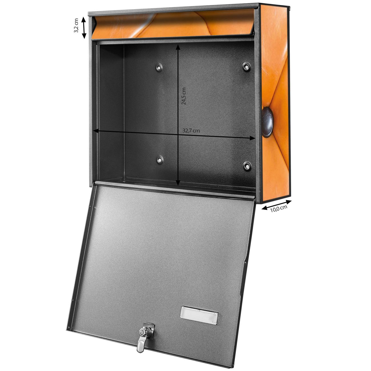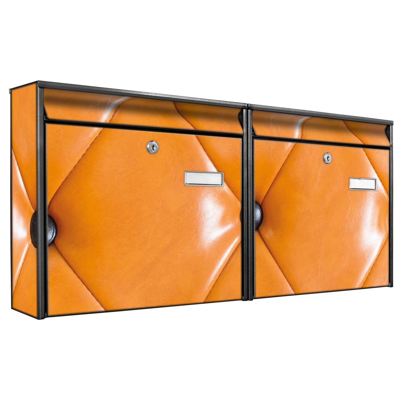 FUNKTION: Die Burg Wächter doppel Briefkastenanlage mit Motiv Polster Orange bietet Ihnen ein großes Fassungsvermögen, sodass auch A4 Sendungen eingeworfen werden können. Das Namensschild lässt sich individuell beschriften. DESIGN: Die 2 Briefkästen mit Polster Orange Motiv haben ein sehr ansprechendes und zeitloses Design. Heben Sie Sich von der tristen grauen Masse ab, ohne auf Funktionalität zu verzichten. Sie erhalten 2 Schlüssel sowie das Montagematerial. DETAILS: Der Doppelbriefkasten besteht aus verzinktem Stahl weiß. Er ist 72,5cm x 32,2cm x 10cm groß. Das Motiv besteht aus einer wetter- und UV-festen Folie, die Ihren Briefkasten zusätzlich vor Kratzern schützt. NUTZEN: Die stabile Bauart sowie die Wetterfestigkeit machen diese doppel Briefkästen zu einem zuverlässigen Begleiter im Alltag. Effektvoll in Reihe gehangen schmückt die Anlage jede Hauswand. BANJADO: Ihr Briefkasten wird in Sachsen in einer kleinen Manufaktur von Hand veredelt. Die Motivfolie ist lösungsmittelfrei und schutzlaminiert für einen langen Halt. Wir legen großen Wert auf die Verbindung von Funktionalität und Design. Sie erhalten Handarbeit aus Sachsen.