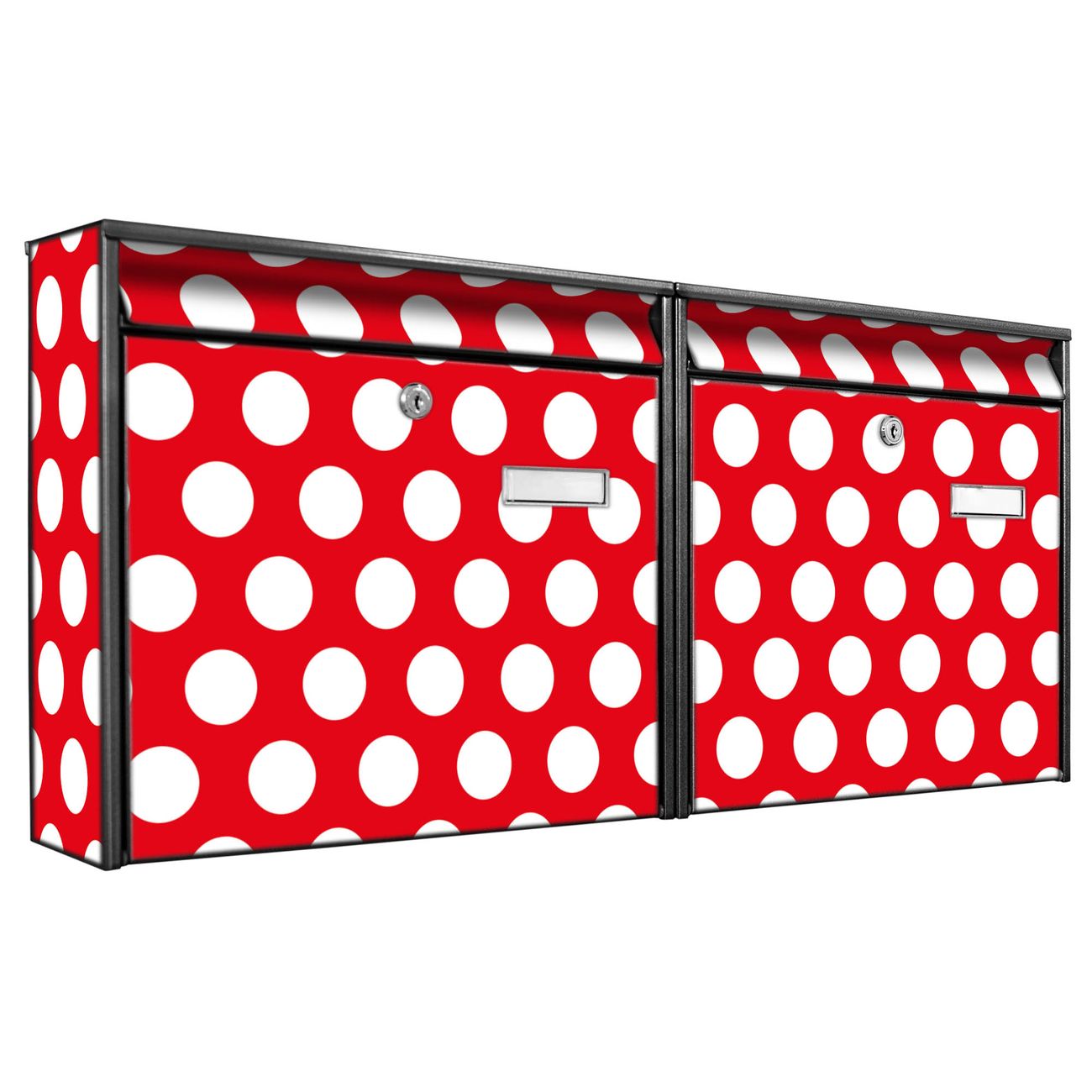 Doppelbriefkasten quer Punkte Rot