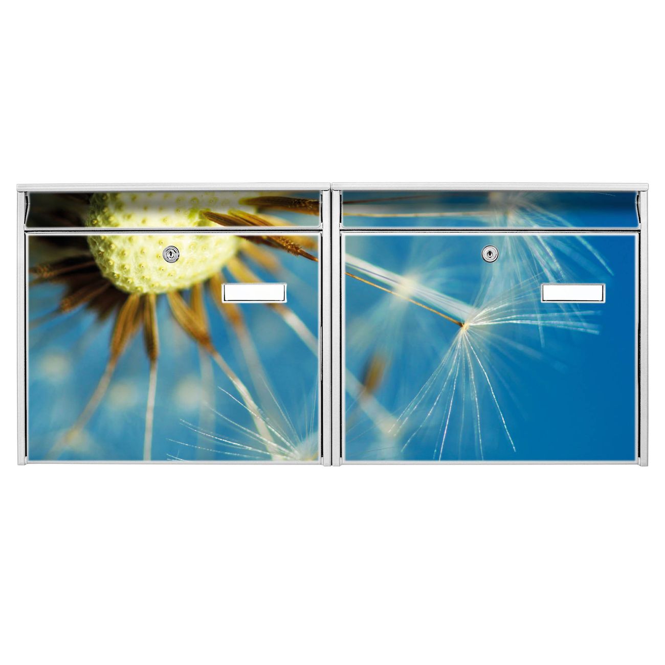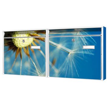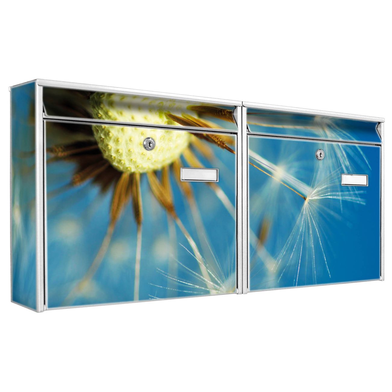 FUNKTION: Die Burg Wächter doppel Briefkastenanlage mit Motiv Pusteblume Detail bietet Ihnen ein großes Fassungsvermögen, sodass auch A4 Sendungen eingeworfen werden können. Das Namensschild lässt sich individuell beschriften. DESIGN: Die 2 Briefkästen mit Pusteblume Detail Motiv haben ein sehr ansprechendes und zeitloses Design. Heben Sie Sich von der tristen grauen Masse ab, ohne auf Funktionalität zu verzichten. Sie erhalten 2 Schlüssel sowie das Montagematerial. DETAILS: Der Doppelbriefkasten besteht aus verzinktem Stahl weiß. Er ist 72,5cm x 32,2cm x 10cm groß. Das Motiv besteht aus einer wetter- und UV-festen Folie, die Ihren Briefkasten zusätzlich vor Kratzern schützt. NUTZEN: Die stabile Bauart sowie die Wetterfestigkeit machen diese doppel Briefkästen zu einem zuverlässigen Begleiter im Alltag. Effektvoll in Reihe gehangen schmückt die Anlage jede Hauswand. BANJADO: Ihr Briefkasten wird in Sachsen in einer kleinen Manufaktur von Hand veredelt. Die Motivfolie ist lösungsmittelfrei und schutzlaminiert für einen langen Halt. Wir legen großen Wert auf die Verbindung von Funktionalität und Design. Sie erhalten Handarbeit aus Sachsen.