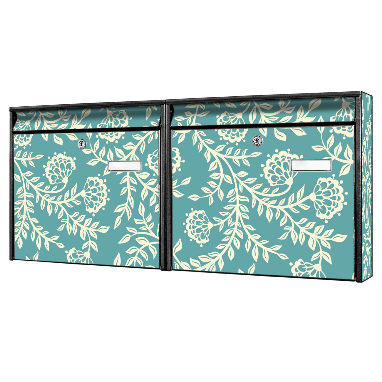 FUNKTION: Die Burg Wächter doppel Briefkastenanlage mit Motiv Rankenornament bietet Ihnen ein großes Fassungsvermögen, sodass auch A4 Sendungen eingeworfen werden können. Das Namensschild lässt sich individuell beschriften. DESIGN: Die 2 Briefkästen mit Rankenornament Motiv haben ein sehr ansprechendes und zeitloses Design. Heben Sie Sich von der tristen grauen Masse ab, ohne auf Funktionalität zu verzichten. Sie erhalten 2 Schlüssel sowie das Montagematerial. DETAILS: Der Doppelbriefkasten besteht aus verzinktem Stahl weiß. Er ist 72,5cm x 32,2cm x 10cm groß. Das Motiv besteht aus einer wetter- und UV-festen Folie, die Ihren Briefkasten zusätzlich vor Kratzern schützt. NUTZEN: Die stabile Bauart sowie die Wetterfestigkeit machen diese doppel Briefkästen zu einem zuverlässigen Begleiter im Alltag. Effektvoll in Reihe gehangen schmückt die Anlage jede Hauswand. BANJADO: Ihr Briefkasten wird in Sachsen in einer kleinen Manufaktur von Hand veredelt. Die Motivfolie ist lösungsmittelfrei und schutzlaminiert für einen langen Halt. Wir legen großen Wert auf die Verbindung von Funktionalität und Design. Sie erhalten Handarbeit aus Sachsen.