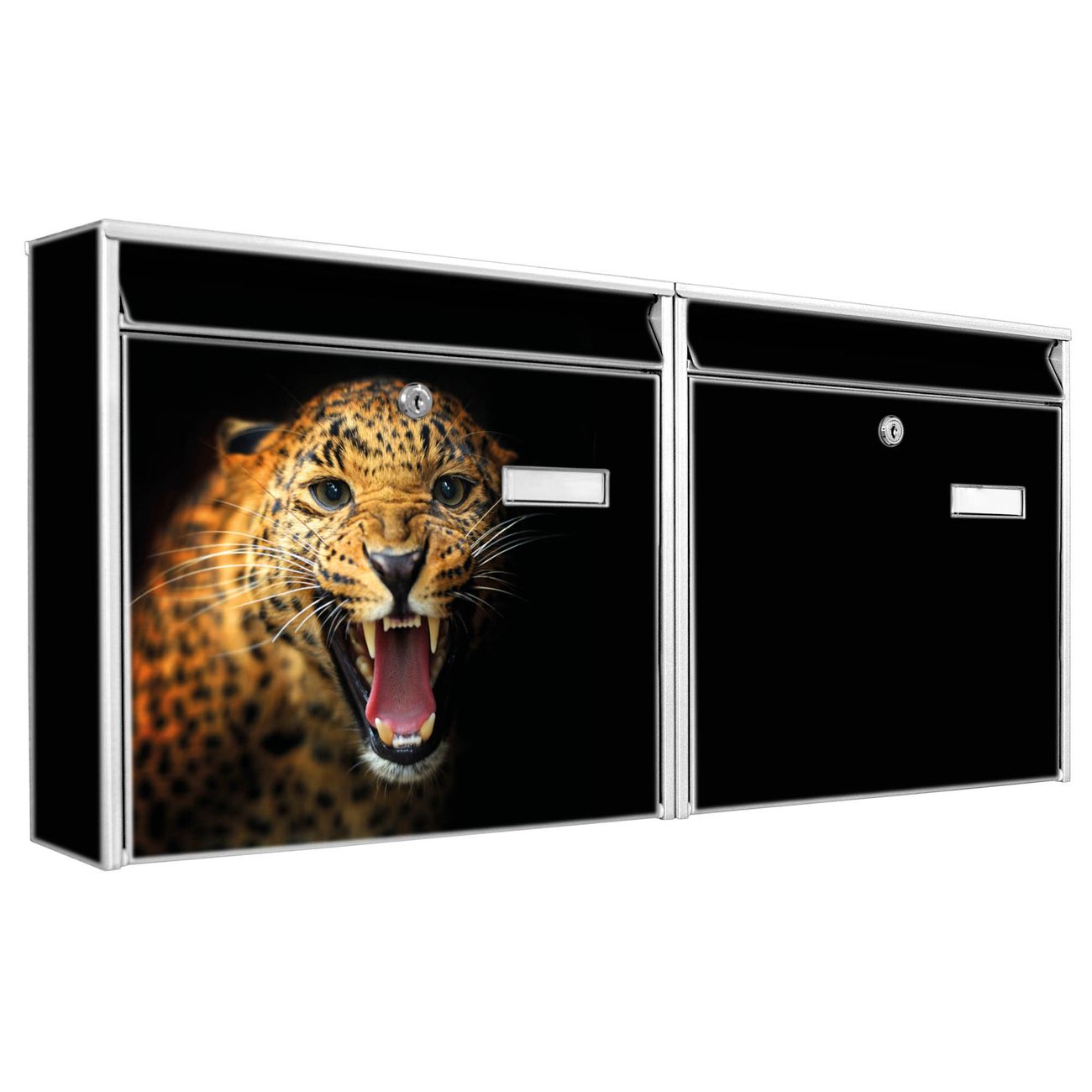 FUNKTION: Die Burg Wächter doppel Briefkastenanlage mit Motiv Raubkatze bietet Ihnen ein großes Fassungsvermögen, sodass auch A4 Sendungen eingeworfen werden können. Das Namensschild lässt sich individuell beschriften. DESIGN: Die 2 Briefkästen mit Raubkatze Motiv haben ein sehr ansprechendes und zeitloses Design. Heben Sie Sich von der tristen grauen Masse ab, ohne auf Funktionalität zu verzichten. Sie erhalten 2 Schlüssel sowie das Montagematerial. DETAILS: Der Doppelbriefkasten besteht aus verzinktem Stahl weiß. Er ist 72,5cm x 32,2cm x 10cm groß. Das Motiv besteht aus einer wetter- und UV-festen Folie, die Ihren Briefkasten zusätzlich vor Kratzern schützt. NUTZEN: Die stabile Bauart sowie die Wetterfestigkeit machen diese doppel Briefkästen zu einem zuverlässigen Begleiter im Alltag. Effektvoll in Reihe gehangen schmückt die Anlage jede Hauswand. BANJADO: Ihr Briefkasten wird in Sachsen in einer kleinen Manufaktur von Hand veredelt. Die Motivfolie ist lösungsmittelfrei und schutzlaminiert für einen langen Halt. Wir legen großen Wert auf die Verbindung von Funktionalität und Design. Sie erhalten Handarbeit aus Sachsen.