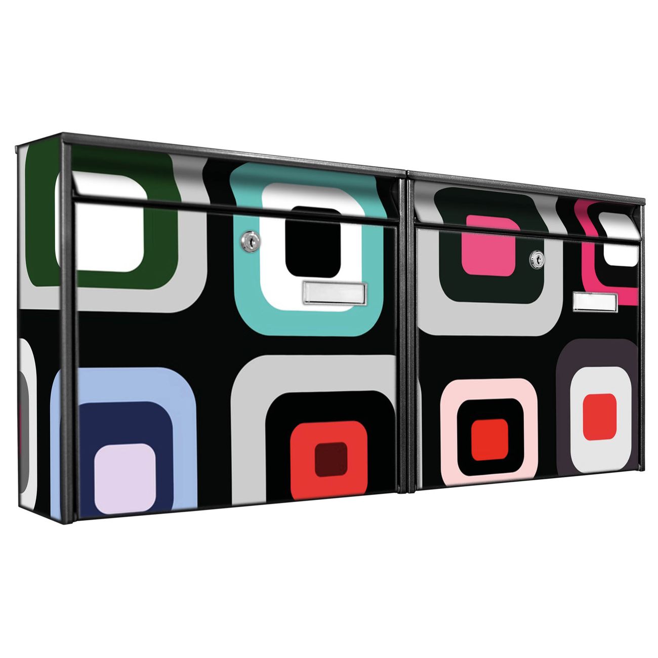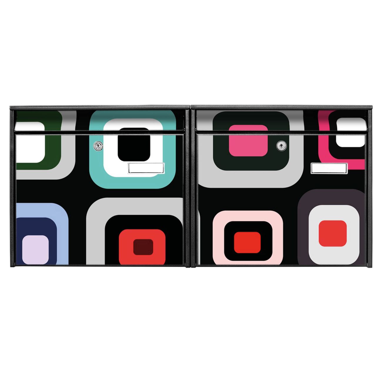 FUNKTION: Die Burg Wächter doppel Briefkastenanlage mit Motiv Retro bietet Ihnen ein großes Fassungsvermögen, sodass auch A4 Sendungen eingeworfen werden können. Das Namensschild lässt sich individuell beschriften. DESIGN: Die 2 Briefkästen mit Retro Motiv haben ein sehr ansprechendes und zeitloses Design. Heben Sie Sich von der tristen grauen Masse ab, ohne auf Funktionalität zu verzichten. Sie erhalten 2 Schlüssel sowie das Montagematerial. DETAILS: Der Doppelbriefkasten besteht aus verzinktem Stahl weiß. Er ist 72,5cm x 32,2cm x 10cm groß. Das Motiv besteht aus einer wetter- und UV-festen Folie, die Ihren Briefkasten zusätzlich vor Kratzern schützt. NUTZEN: Die stabile Bauart sowie die Wetterfestigkeit machen diese doppel Briefkästen zu einem zuverlässigen Begleiter im Alltag. Effektvoll in Reihe gehangen schmückt die Anlage jede Hauswand. BANJADO: Ihr Briefkasten wird in Sachsen in einer kleinen Manufaktur von Hand veredelt. Die Motivfolie ist lösungsmittelfrei und schutzlaminiert für einen langen Halt. Wir legen großen Wert auf die Verbindung von Funktionalität und Design. Sie erhalten Handarbeit aus Sachsen.