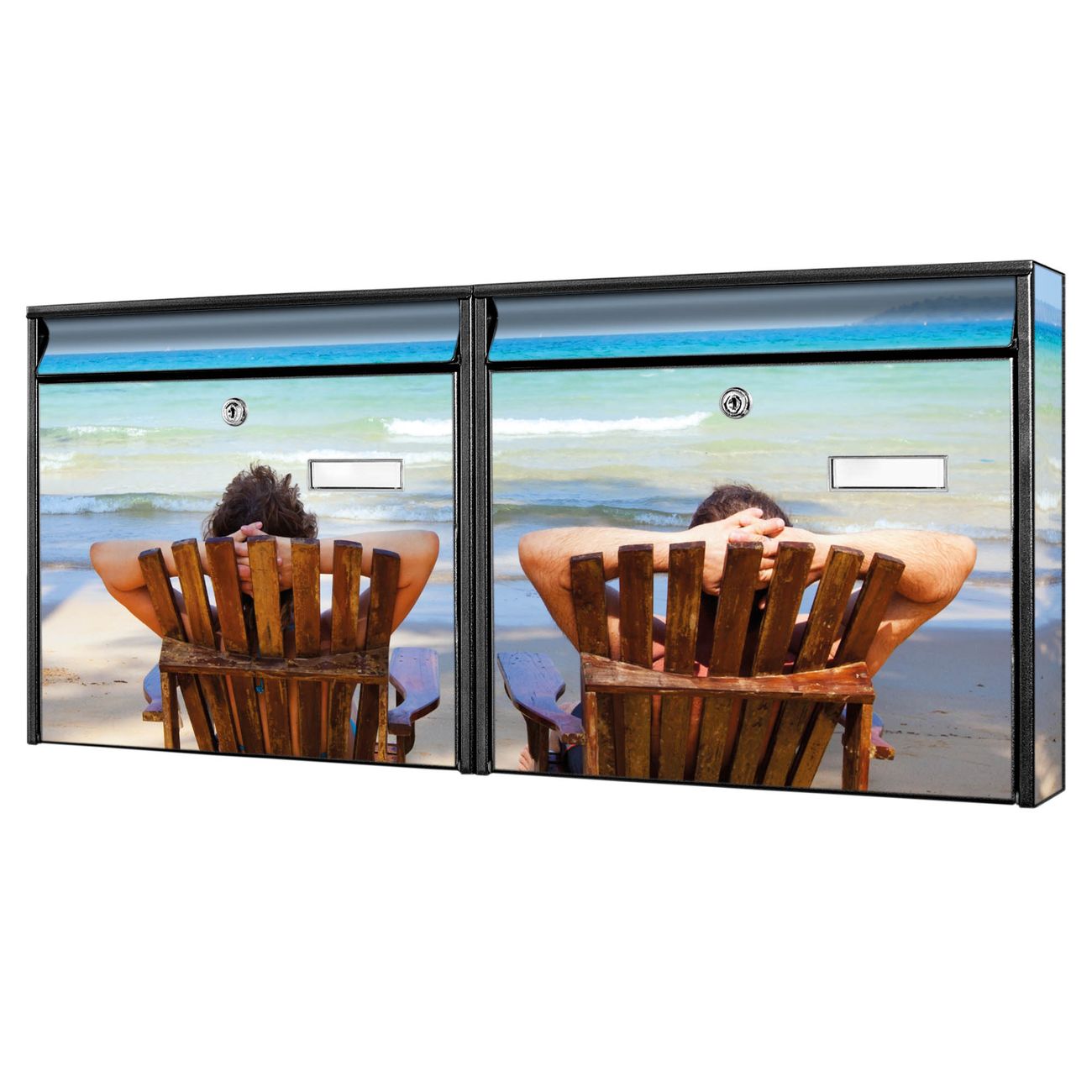 FUNKTION: Die Burg Wächter doppel Briefkastenanlage mit Motiv Robinson Und Freitag bietet Ihnen ein großes Fassungsvermögen, sodass auch A4 Sendungen eingeworfen werden können. Das Namensschild lässt sich individuell beschriften. DESIGN: Die 2 Briefkästen mit Robinson Und Freitag Motiv haben ein sehr ansprechendes und zeitloses Design. Heben Sie Sich von der tristen grauen Masse ab, ohne auf Funktionalität zu verzichten. Sie erhalten 2 Schlüssel sowie das Montagematerial. DETAILS: Der Doppelbriefkasten besteht aus verzinktem Stahl weiß. Er ist 72,5cm x 32,2cm x 10cm groß. Das Motiv besteht aus einer wetter- und UV-festen Folie, die Ihren Briefkasten zusätzlich vor Kratzern schützt. NUTZEN: Die stabile Bauart sowie die Wetterfestigkeit machen diese doppel Briefkästen zu einem zuverlässigen Begleiter im Alltag. Effektvoll in Reihe gehangen schmückt die Anlage jede Hauswand. BANJADO: Ihr Briefkasten wird in Sachsen in einer kleinen Manufaktur von Hand veredelt. Die Motivfolie ist lösungsmittelfrei und schutzlaminiert für einen langen Halt. Wir legen großen Wert auf die Verbindung von Funktionalität und Design. Sie erhalten Handarbeit aus Sachsen.