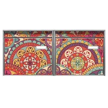 FUNKTION: Die Burg Wächter doppel Briefkastenanlage mit Motiv Rosetten bietet Ihnen ein großes Fassungsvermögen, sodass auch A4 Sendungen eingeworfen werden können. Das Namensschild lässt sich individuell beschriften. DESIGN: Die 2 Briefkästen mit Rosetten Motiv haben ein sehr ansprechendes und zeitloses Design. Heben Sie Sich von der tristen grauen Masse ab, ohne auf Funktionalität zu verzichten. Sie erhalten 2 Schlüssel sowie das Montagematerial. DETAILS: Der Doppelbriefkasten besteht aus verzinktem Stahl weiß. Er ist 72,5cm x 32,2cm x 10cm groß. Das Motiv besteht aus einer wetter- und UV-festen Folie, die Ihren Briefkasten zusätzlich vor Kratzern schützt. NUTZEN: Die stabile Bauart sowie die Wetterfestigkeit machen diese doppel Briefkästen zu einem zuverlässigen Begleiter im Alltag. Effektvoll in Reihe gehangen schmückt die Anlage jede Hauswand. BANJADO: Ihr Briefkasten wird in Sachsen in einer kleinen Manufaktur von Hand veredelt. Die Motivfolie ist lösungsmittelfrei und schutzlaminiert für einen langen Halt. Wir legen großen Wert auf die Verbindung von Funktionalität und Design. Sie erhalten Handarbeit aus Sachsen.
