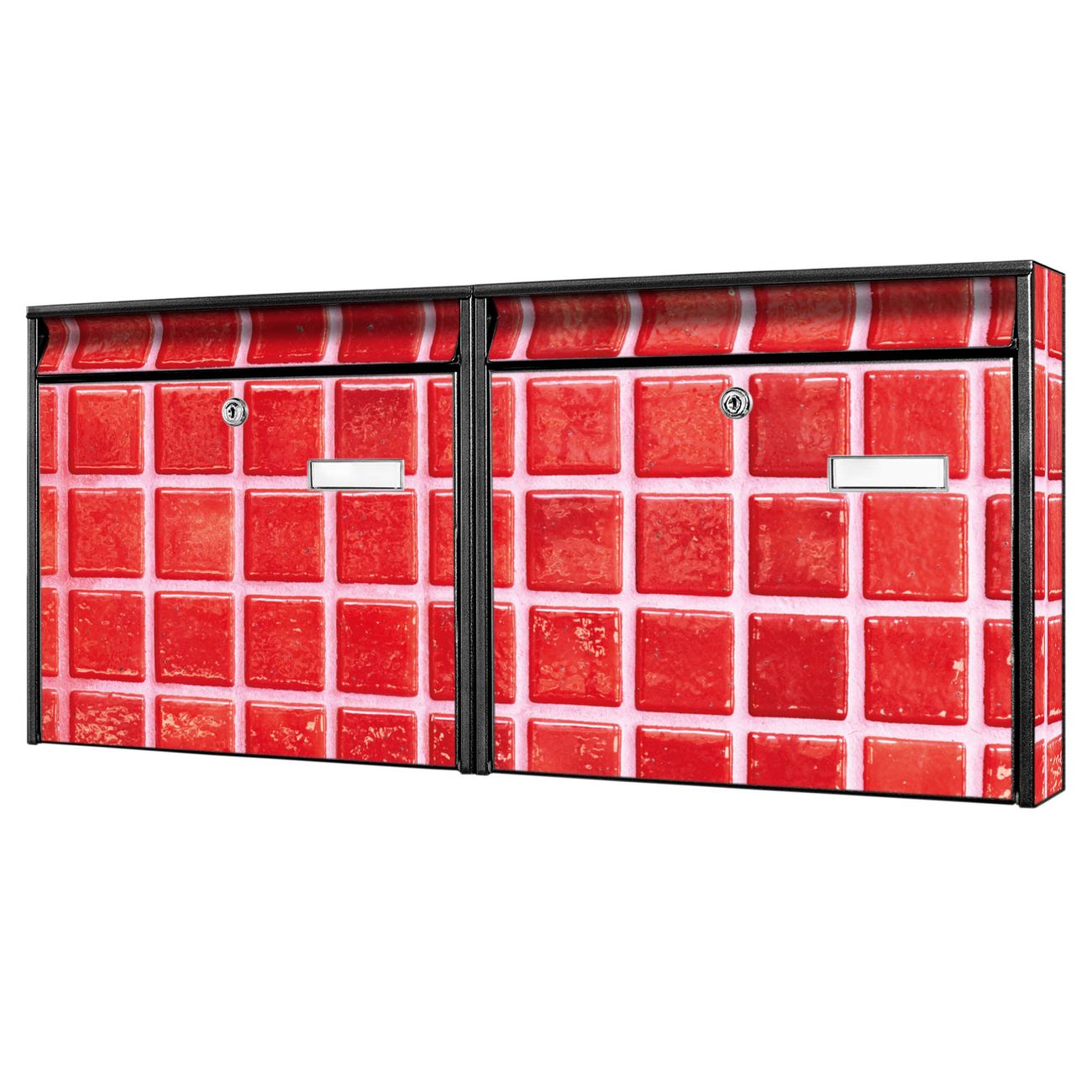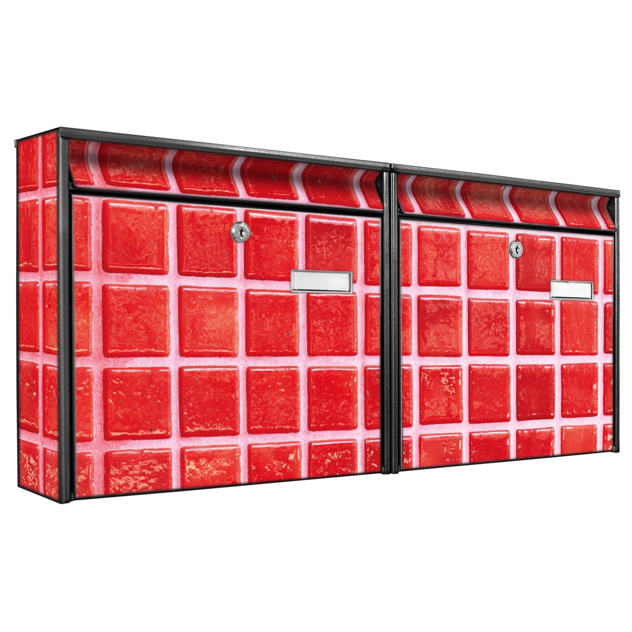 Doppelbriefkasten quer Rote Kacheln