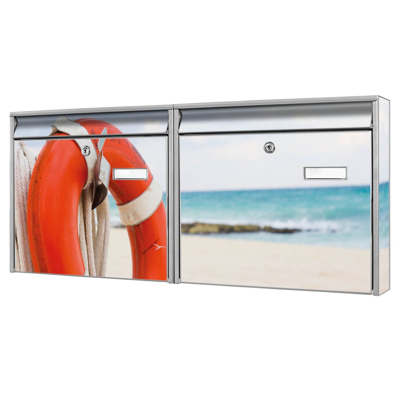 Doppelbriefkasten quer Roter Rettungsring
