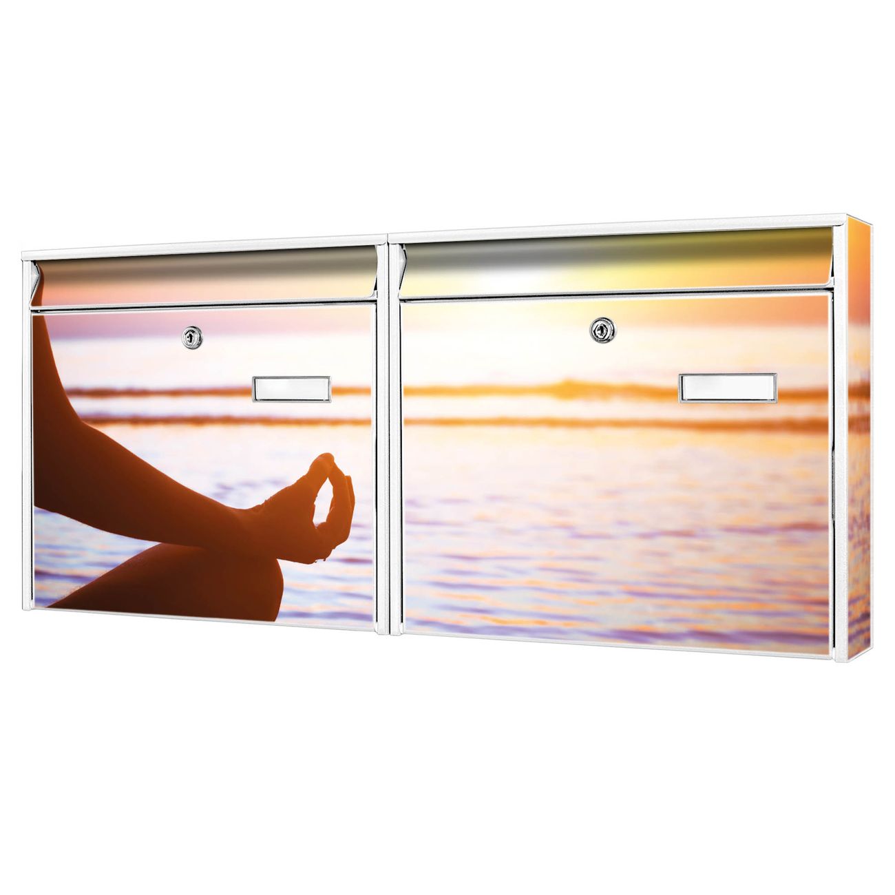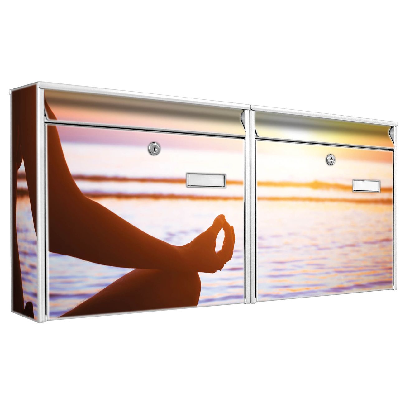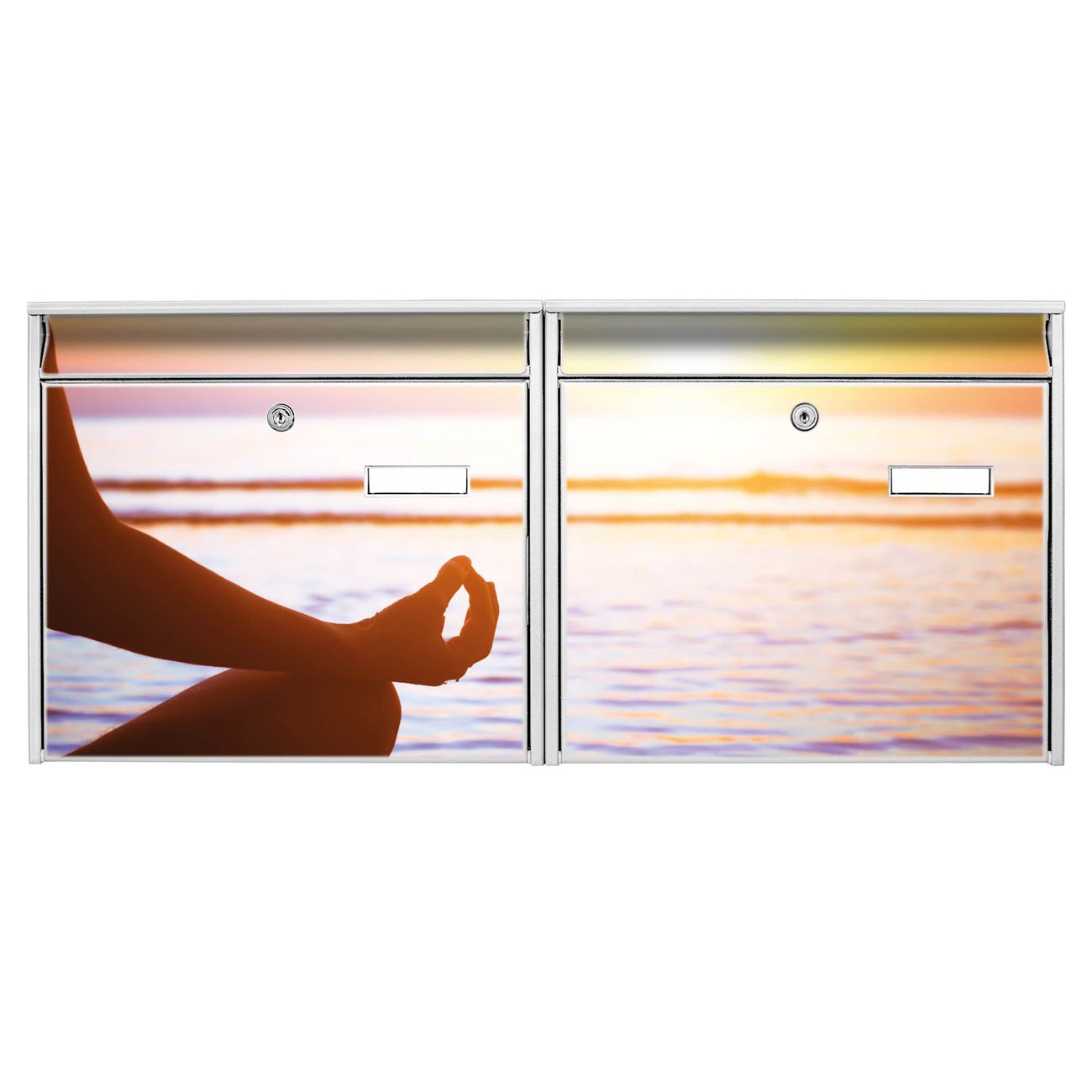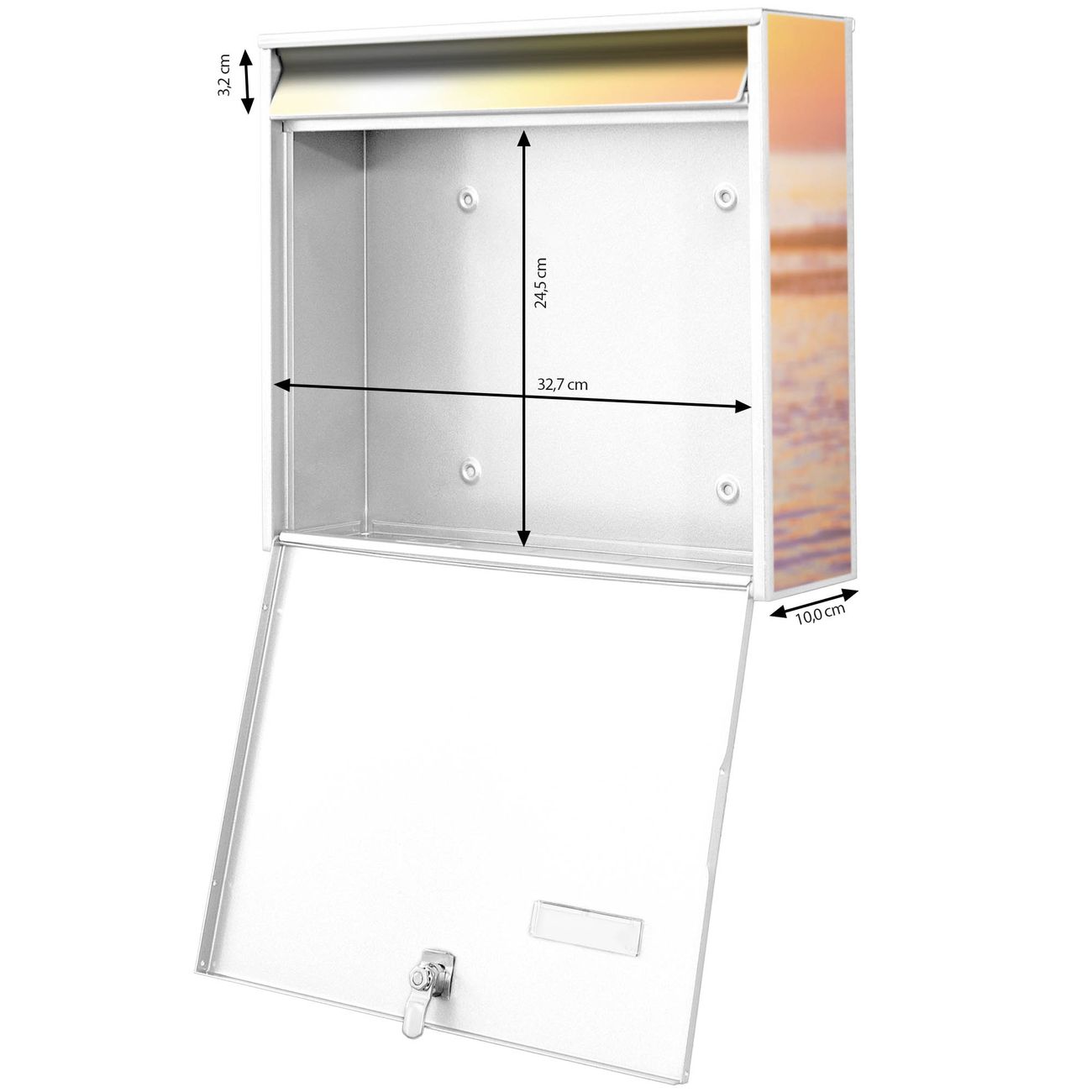 FUNKTION: Die Burg Wächter doppel Briefkastenanlage mit Motiv Ruhe bietet Ihnen ein großes Fassungsvermögen, sodass auch A4 Sendungen eingeworfen werden können. Das Namensschild lässt sich individuell beschriften. DESIGN: Die 2 Briefkästen mit Ruhe Motiv haben ein sehr ansprechendes und zeitloses Design. Heben Sie Sich von der tristen grauen Masse ab, ohne auf Funktionalität zu verzichten. Sie erhalten 2 Schlüssel sowie das Montagematerial. DETAILS: Der Doppelbriefkasten besteht aus verzinktem Stahl weiß. Er ist 72,5cm x 32,2cm x 10cm groß. Das Motiv besteht aus einer wetter- und UV-festen Folie, die Ihren Briefkasten zusätzlich vor Kratzern schützt. NUTZEN: Die stabile Bauart sowie die Wetterfestigkeit machen diese doppel Briefkästen zu einem zuverlässigen Begleiter im Alltag. Effektvoll in Reihe gehangen schmückt die Anlage jede Hauswand. BANJADO: Ihr Briefkasten wird in Sachsen in einer kleinen Manufaktur von Hand veredelt. Die Motivfolie ist lösungsmittelfrei und schutzlaminiert für einen langen Halt. Wir legen großen Wert auf die Verbindung von Funktionalität und Design. Sie erhalten Handarbeit aus Sachsen.