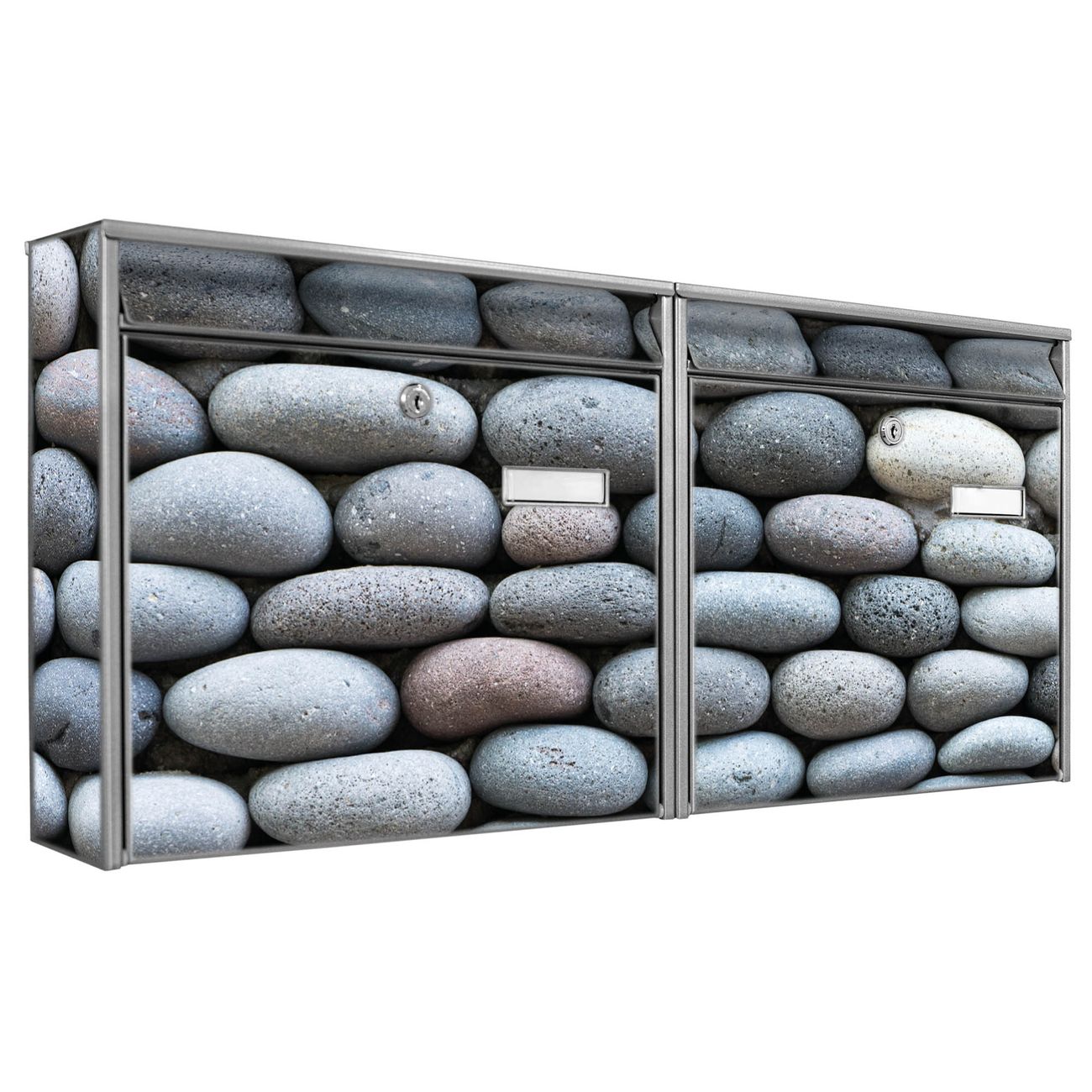Doppelbriefkasten quer Runde Steine