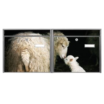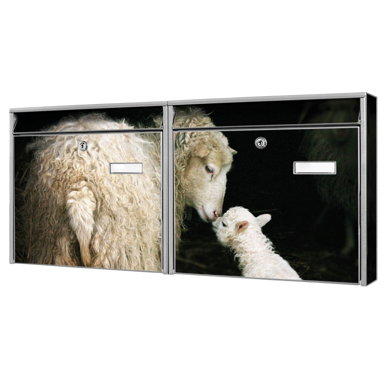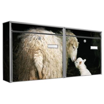 FUNKTION: Die Burg Wächter doppel Briefkastenanlage mit Motiv Schaf Und Lamm bietet Ihnen ein großes Fassungsvermögen, sodass auch A4 Sendungen eingeworfen werden können. Das Namensschild lässt sich individuell beschriften. DESIGN: Die 2 Briefkästen mit Schaf Und Lamm Motiv haben ein sehr ansprechendes und zeitloses Design. Heben Sie Sich von der tristen grauen Masse ab, ohne auf Funktionalität zu verzichten. Sie erhalten 2 Schlüssel sowie das Montagematerial. DETAILS: Der Doppelbriefkasten besteht aus verzinktem Stahl weiß. Er ist 72,5cm x 32,2cm x 10cm groß. Das Motiv besteht aus einer wetter- und UV-festen Folie, die Ihren Briefkasten zusätzlich vor Kratzern schützt. NUTZEN: Die stabile Bauart sowie die Wetterfestigkeit machen diese doppel Briefkästen zu einem zuverlässigen Begleiter im Alltag. Effektvoll in Reihe gehangen schmückt die Anlage jede Hauswand. BANJADO: Ihr Briefkasten wird in Sachsen in einer kleinen Manufaktur von Hand veredelt. Die Motivfolie ist lösungsmittelfrei und schutzlaminiert für einen langen Halt. Wir legen großen Wert auf die Verbindung von Funktionalität und Design. Sie erhalten Handarbeit aus Sachsen.