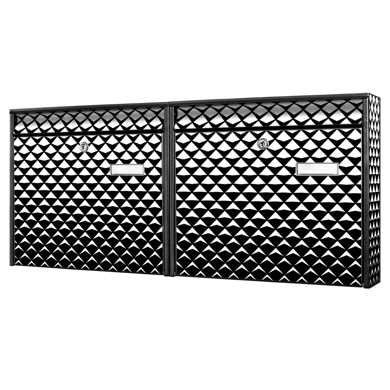 FUNKTION: Die Burg Wächter doppel Briefkastenanlage mit Motiv Schattierung bietet Ihnen ein großes Fassungsvermögen, sodass auch A4 Sendungen eingeworfen werden können. Das Namensschild lässt sich individuell beschriften. DESIGN: Die 2 Briefkästen mit Schattierung Motiv haben ein sehr ansprechendes und zeitloses Design. Heben Sie Sich von der tristen grauen Masse ab, ohne auf Funktionalität zu verzichten. Sie erhalten 2 Schlüssel sowie das Montagematerial. DETAILS: Der Doppelbriefkasten besteht aus verzinktem Stahl weiß. Er ist 72,5cm x 32,2cm x 10cm groß. Das Motiv besteht aus einer wetter- und UV-festen Folie, die Ihren Briefkasten zusätzlich vor Kratzern schützt. NUTZEN: Die stabile Bauart sowie die Wetterfestigkeit machen diese doppel Briefkästen zu einem zuverlässigen Begleiter im Alltag. Effektvoll in Reihe gehangen schmückt die Anlage jede Hauswand. BANJADO: Ihr Briefkasten wird in Sachsen in einer kleinen Manufaktur von Hand veredelt. Die Motivfolie ist lösungsmittelfrei und schutzlaminiert für einen langen Halt. Wir legen großen Wert auf die Verbindung von Funktionalität und Design. Sie erhalten Handarbeit aus Sachsen.