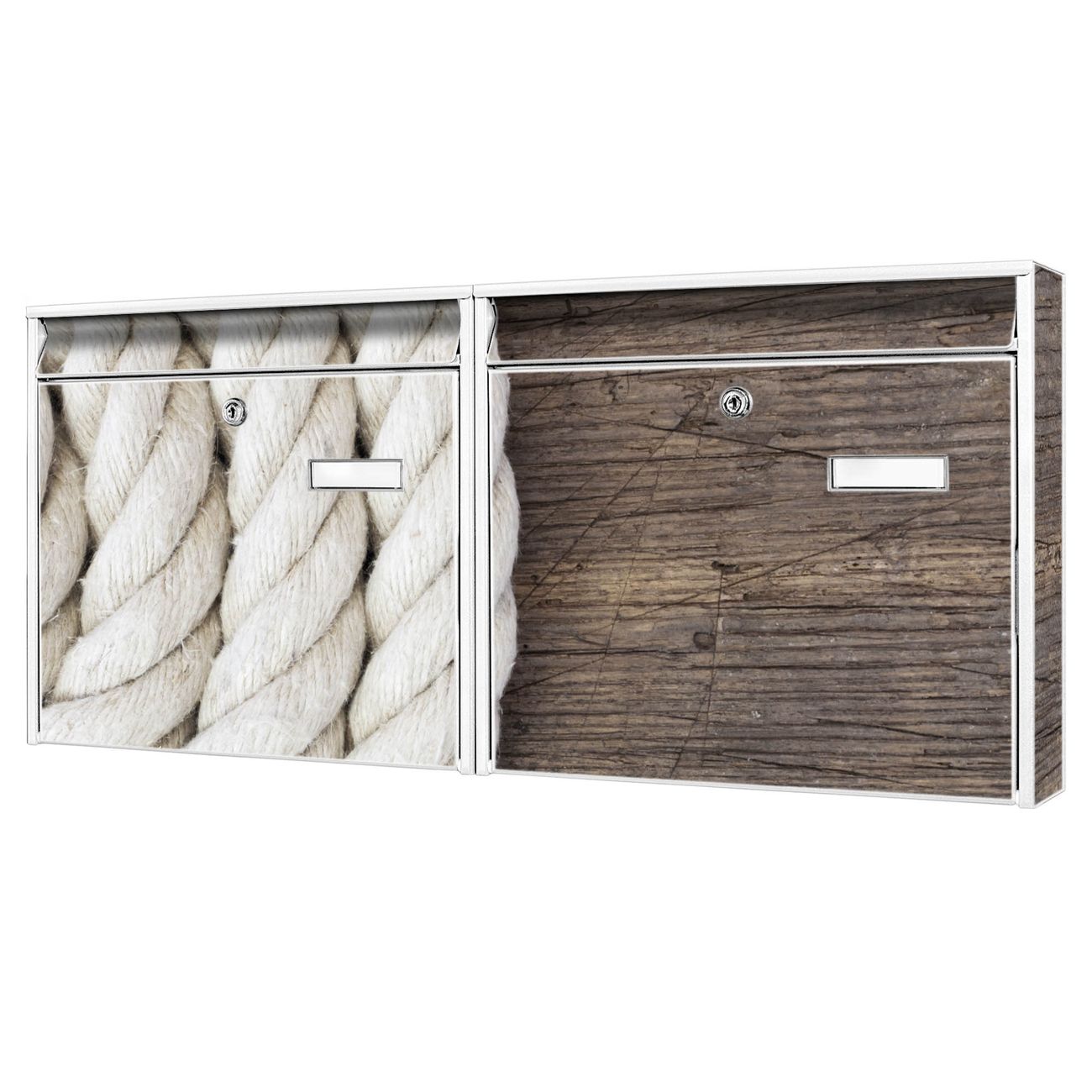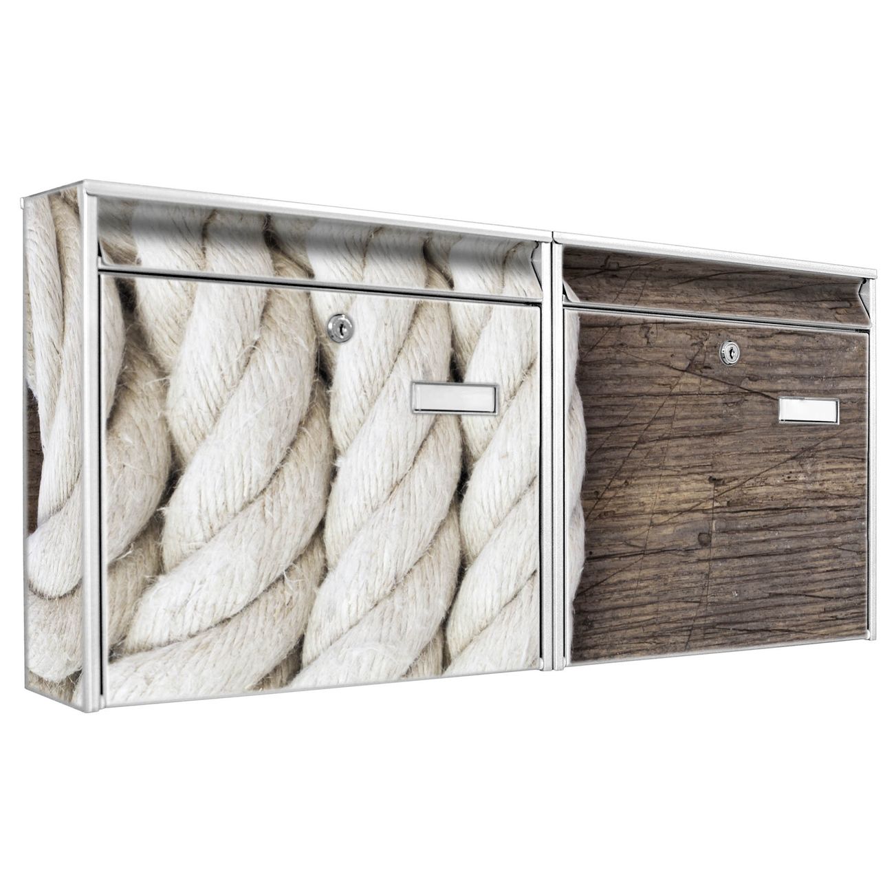 FUNKTION: Die Burg Wächter doppel Briefkastenanlage mit Motiv Seil bietet Ihnen ein großes Fassungsvermögen, sodass auch A4 Sendungen eingeworfen werden können. Das Namensschild lässt sich individuell beschriften. DESIGN: Die 2 Briefkästen mit Seil Motiv haben ein sehr ansprechendes und zeitloses Design. Heben Sie Sich von der tristen grauen Masse ab, ohne auf Funktionalität zu verzichten. Sie erhalten 2 Schlüssel sowie das Montagematerial. DETAILS: Der Doppelbriefkasten besteht aus verzinktem Stahl weiß. Er ist 72,5cm x 32,2cm x 10cm groß. Das Motiv besteht aus einer wetter- und UV-festen Folie, die Ihren Briefkasten zusätzlich vor Kratzern schützt. NUTZEN: Die stabile Bauart sowie die Wetterfestigkeit machen diese doppel Briefkästen zu einem zuverlässigen Begleiter im Alltag. Effektvoll in Reihe gehangen schmückt die Anlage jede Hauswand. BANJADO: Ihr Briefkasten wird in Sachsen in einer kleinen Manufaktur von Hand veredelt. Die Motivfolie ist lösungsmittelfrei und schutzlaminiert für einen langen Halt. Wir legen großen Wert auf die Verbindung von Funktionalität und Design. Sie erhalten Handarbeit aus Sachsen.