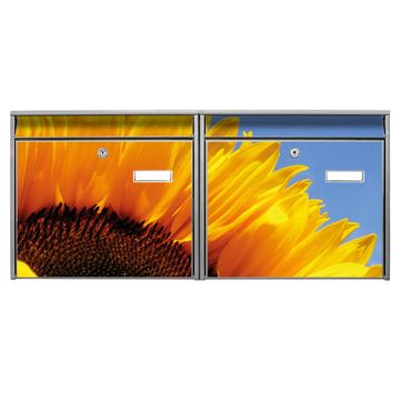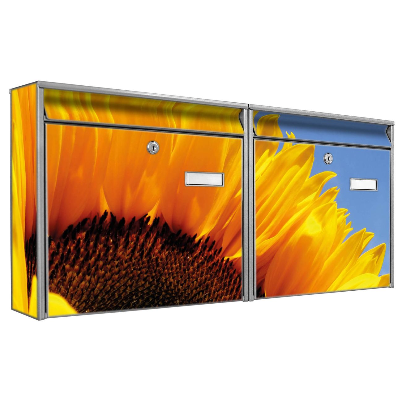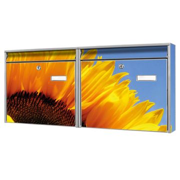 FUNKTION: Die Burg Wächter doppel Briefkastenanlage mit Motiv Sonnenblume bietet Ihnen ein großes Fassungsvermögen, sodass auch A4 Sendungen eingeworfen werden können. Das Namensschild lässt sich individuell beschriften. DESIGN: Die 2 Briefkästen mit Sonnenblume Motiv haben ein sehr ansprechendes und zeitloses Design. Heben Sie Sich von der tristen grauen Masse ab, ohne auf Funktionalität zu verzichten. Sie erhalten 2 Schlüssel sowie das Montagematerial. DETAILS: Der Doppelbriefkasten besteht aus verzinktem Stahl weiß. Er ist 72,5cm x 32,2cm x 10cm groß. Das Motiv besteht aus einer wetter- und UV-festen Folie, die Ihren Briefkasten zusätzlich vor Kratzern schützt. NUTZEN: Die stabile Bauart sowie die Wetterfestigkeit machen diese doppel Briefkästen zu einem zuverlässigen Begleiter im Alltag. Effektvoll in Reihe gehangen schmückt die Anlage jede Hauswand. BANJADO: Ihr Briefkasten wird in Sachsen in einer kleinen Manufaktur von Hand veredelt. Die Motivfolie ist lösungsmittelfrei und schutzlaminiert für einen langen Halt. Wir legen großen Wert auf die Verbindung von Funktionalität und Design. Sie erhalten Handarbeit aus Sachsen.